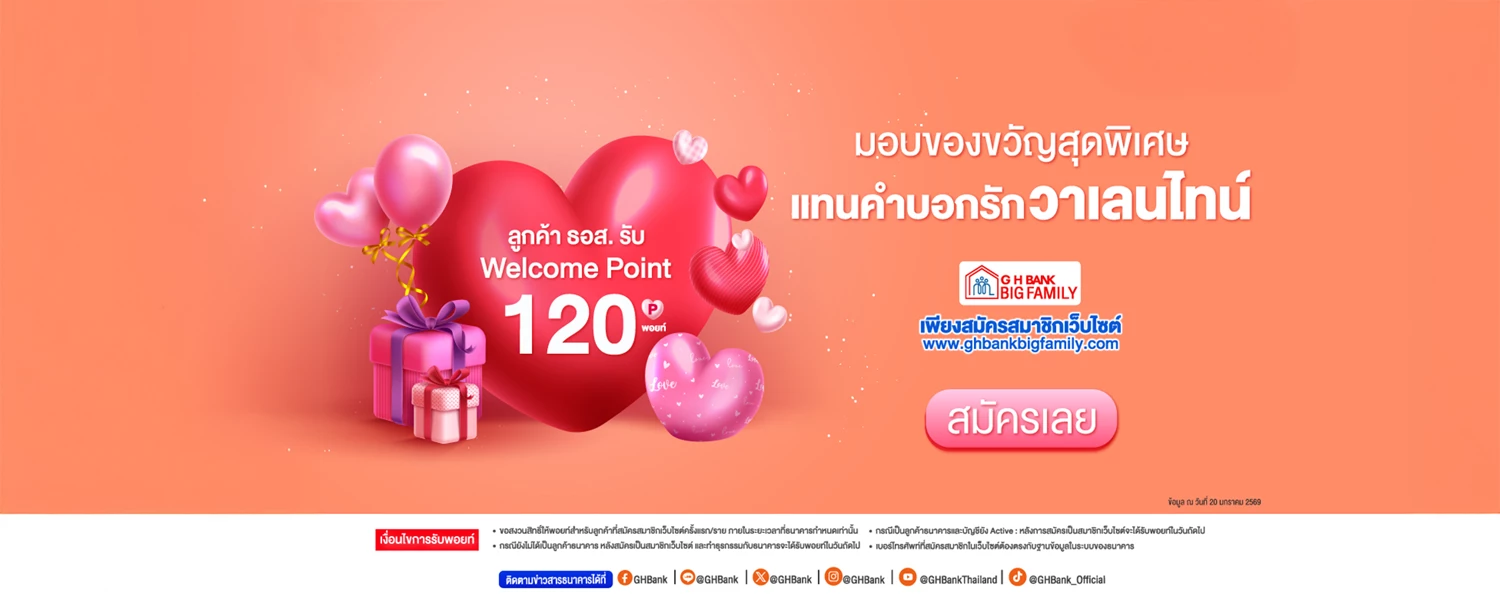 กิจกรรม มอบของขวัญสุดพิเศษ แทนคำบอกรักวาเลนไทน์ เพียงสมัครสมาชิกเว็บไซต์ ghbankbigfamily.com
