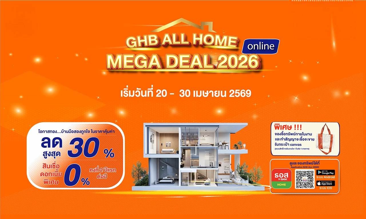 ซื้อบ้านสุดคุ้ม! ธอส. ขนทรัพย์เด่น คอนโดริมน้ำ จัดเต็ม 3 – 5 เม.ย. นี้ ณ เซ็นทรัล เวสต์เกต กับมหกรรมบ้านมือสอง GHB ALL HOME EXHIBITION 2026 ครั้งที่ 2