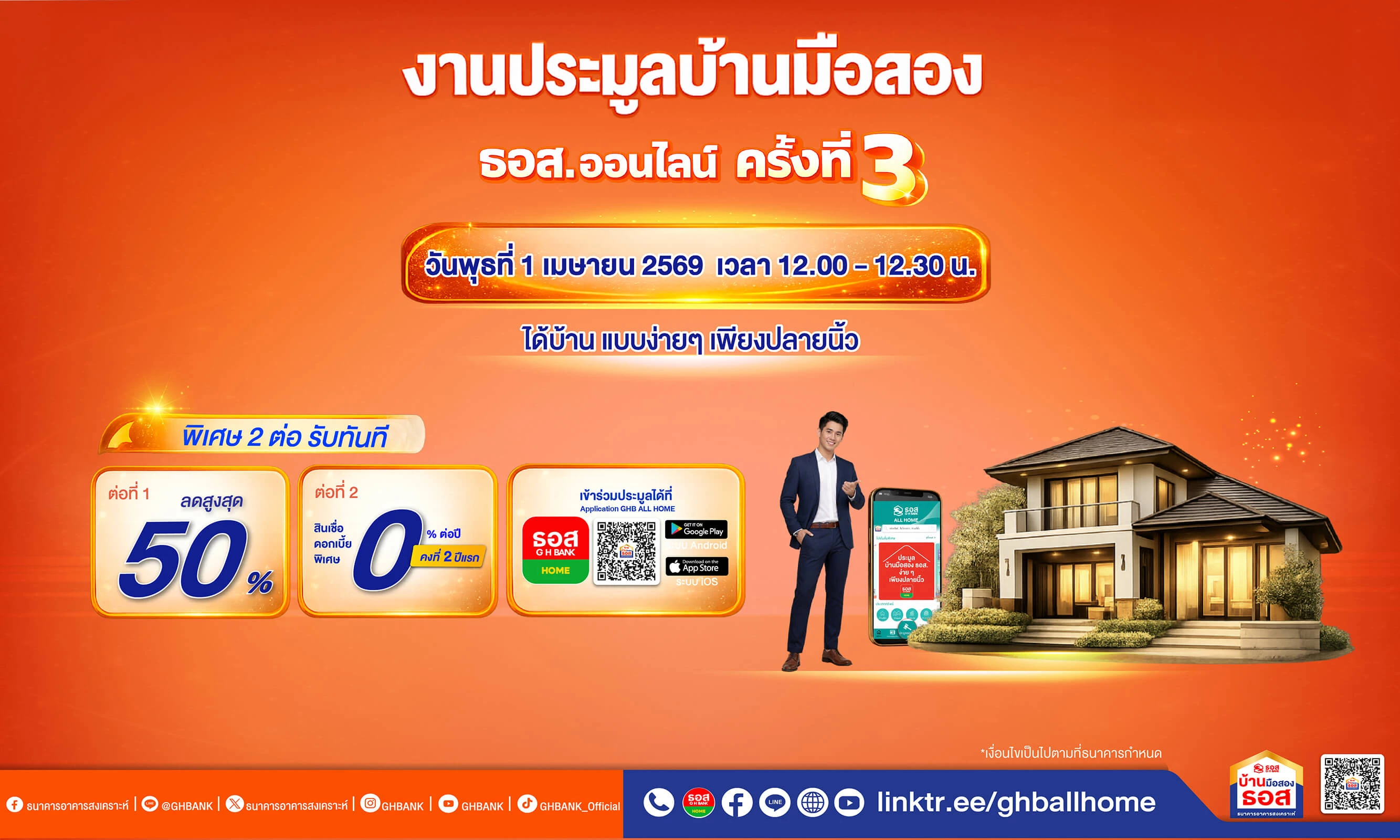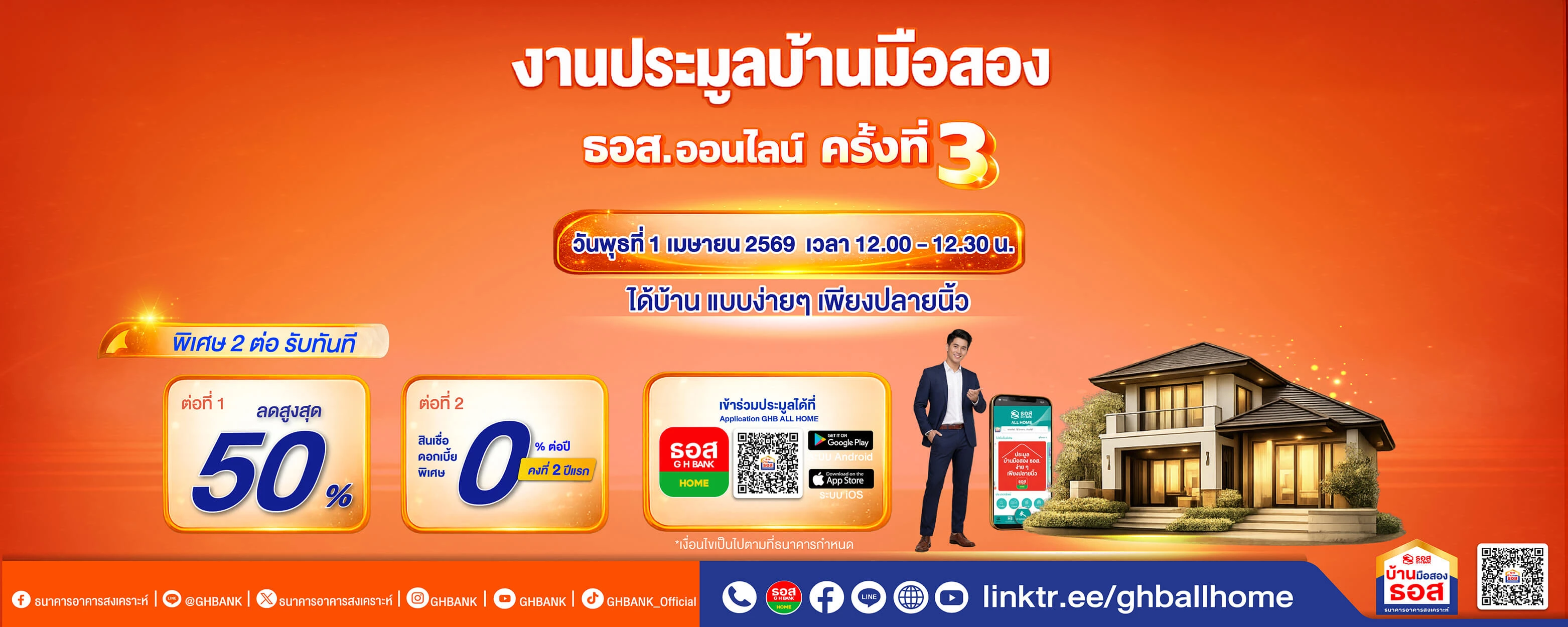 งานประมูลออนไลน์บ้านมือสอง ธอส. ครั้งที่ 3 ประจำปี 2569