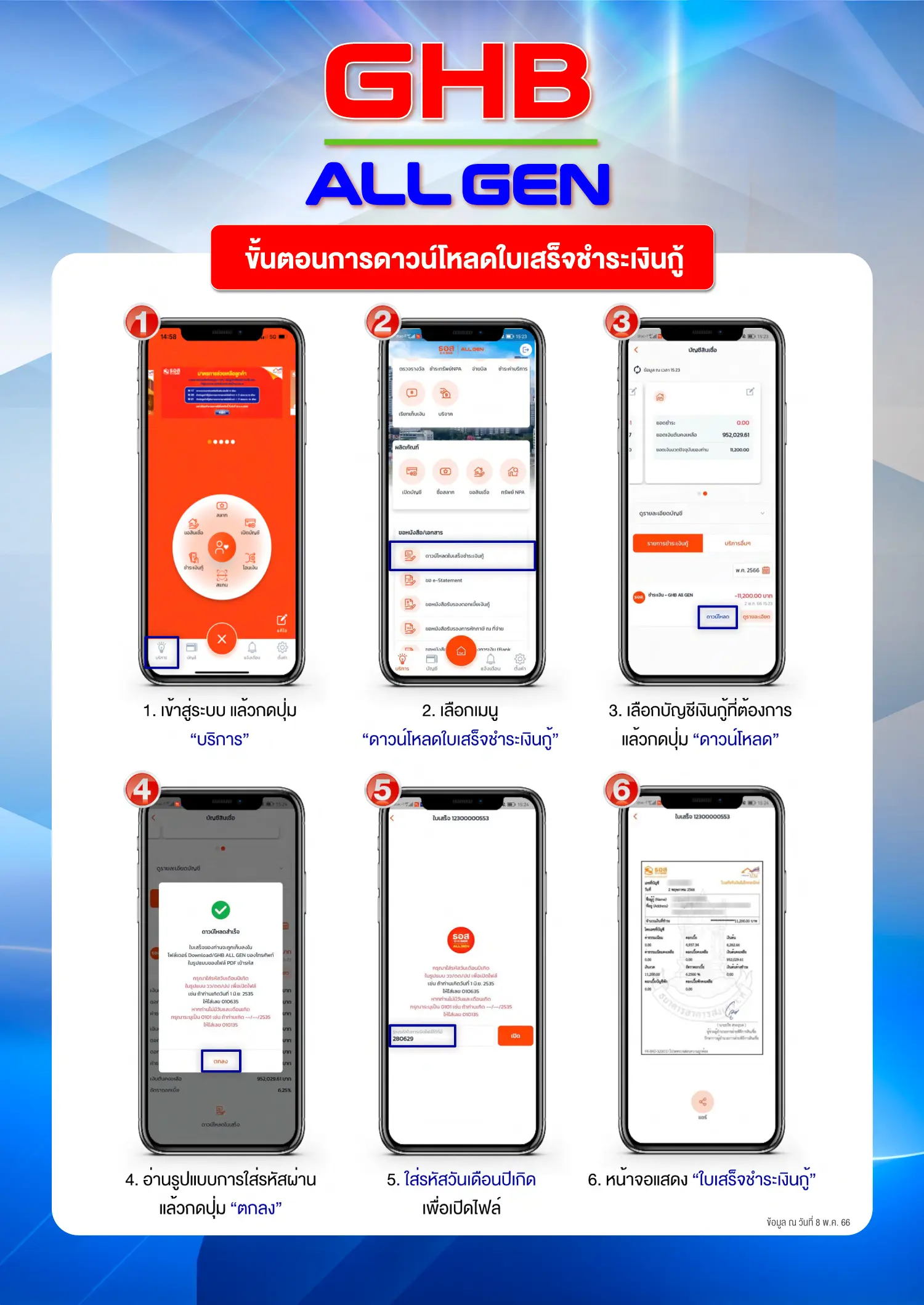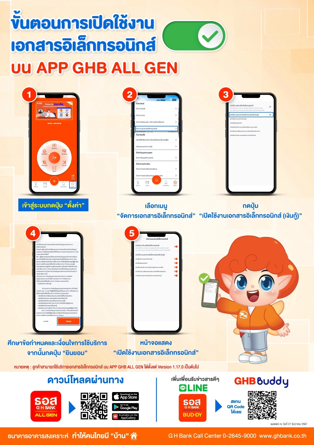 ขั้นตอนการเปิดใช้งานเอกสารอิเล็กทรอนิกส์ผ่านแอปพลิเคชัน GHB ALL GEN