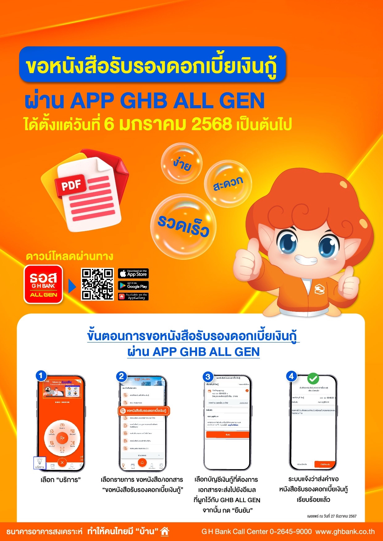 ขั้นตอนการขอหนังสือรับรองดอกเบี้ยเงินกู้ผ่านแอปพลิเคชัน GHB ALL GEN