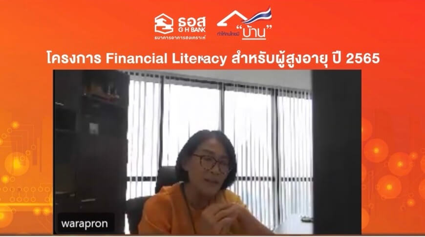 เมื่อวันพุธที่ 30 พฤศจิกายน 2565 ผู้ปฏิบัติงานฝ่ายนโยบายสินเชื่อธุรกิจและภาครัฐ ร่วมกับฝ่ายสนับสนุนสาขานครหลวง ได้จัดกิจกรรม “โครงการ Financial Literacy สำหรับผู้สูงอายุ” ปี 2565 ครั้งที่ 2 โครงการดังกล่าวได้รับความร่วมมือกับข้าราชการ และลูกจ้างของส่วนราชการที่เกษียณอายุราชการ ในสังกัดสำนักงานคณะกรรมการข้าราชการพลเรือน (กพ.) โดยมีวัตถุประสงค์เพื่อให้ความรู้ ความเข้าใจเกี่ยวกับสินเชื่อเพื่อที่อยู่อาศัย ในโครงการสินเชื่อเพื่อที่อยู่อาศัยสำหรับผู้สูงอายุ (Reverse Mortgage : RM) และผลิตภัณฑ์ต่าง ๆ ที่ธนาคารจัดทำขึ้นเพื่อผู้สูงอายุ และความรู้เกี่ยวกับการวางแผนทางการเงิน และการออมด้วยสลากออมทรัพย์ ธอส.ในรูปแบบ Online กิจกรรมดังกล่าวจัดขึ้น ณ อาคาร 2 ชั้น 3 ห้องสราญรมย์ ธนาคารอาคารสงเคราะห์ สำนักงานใหญ่