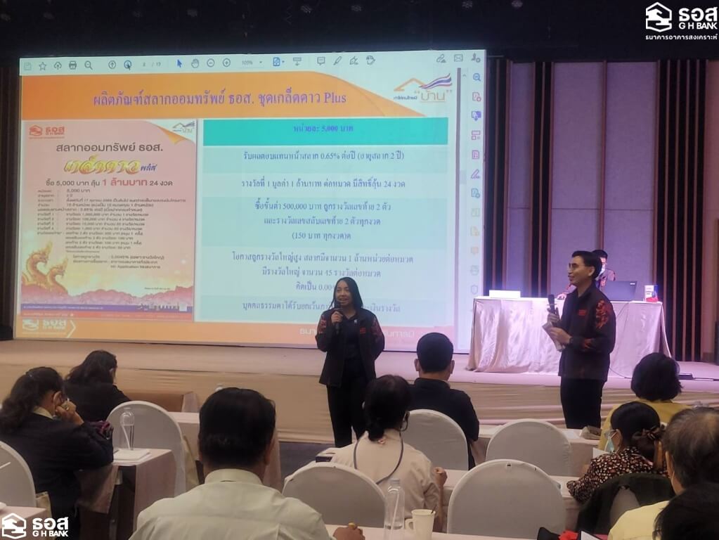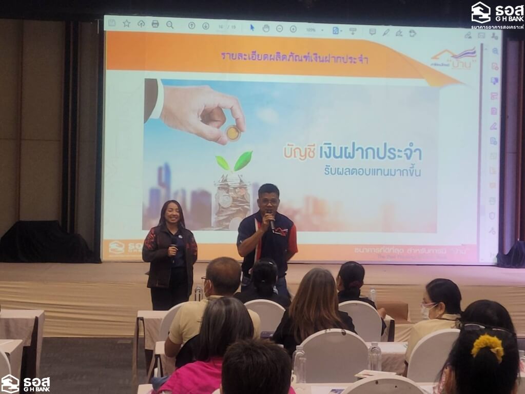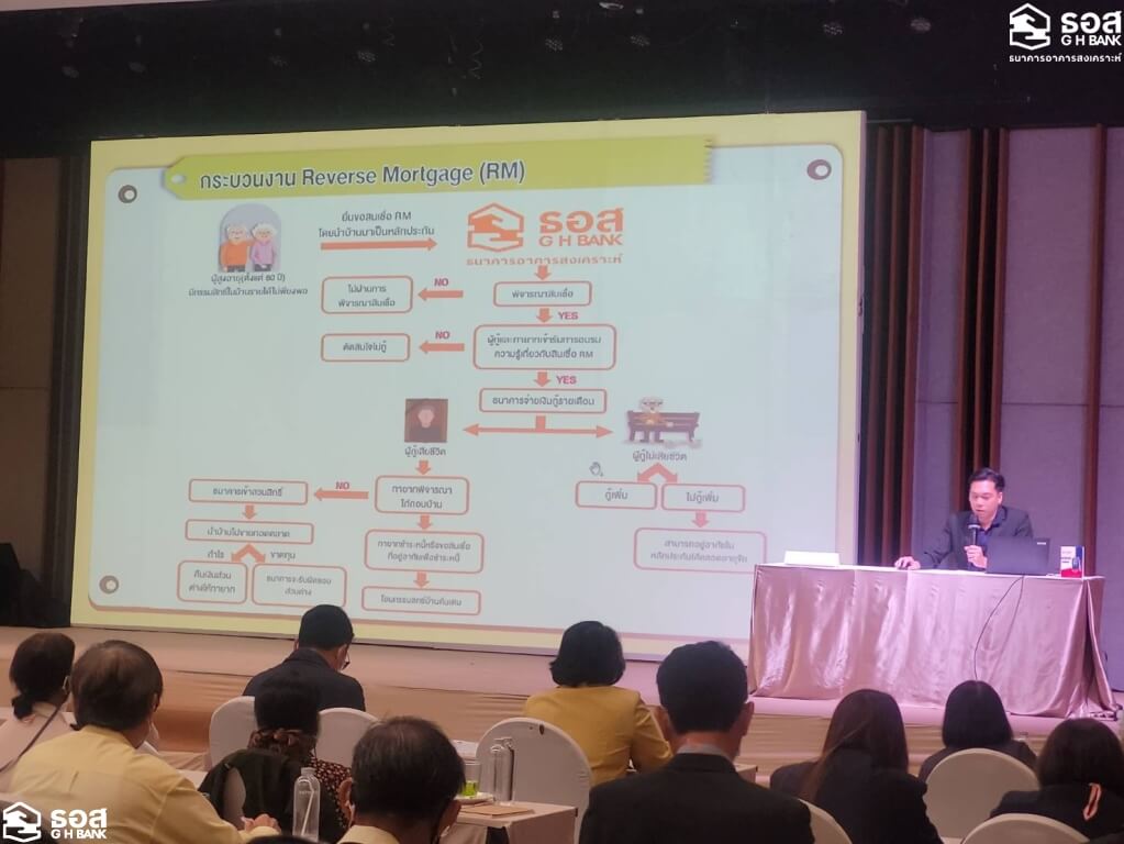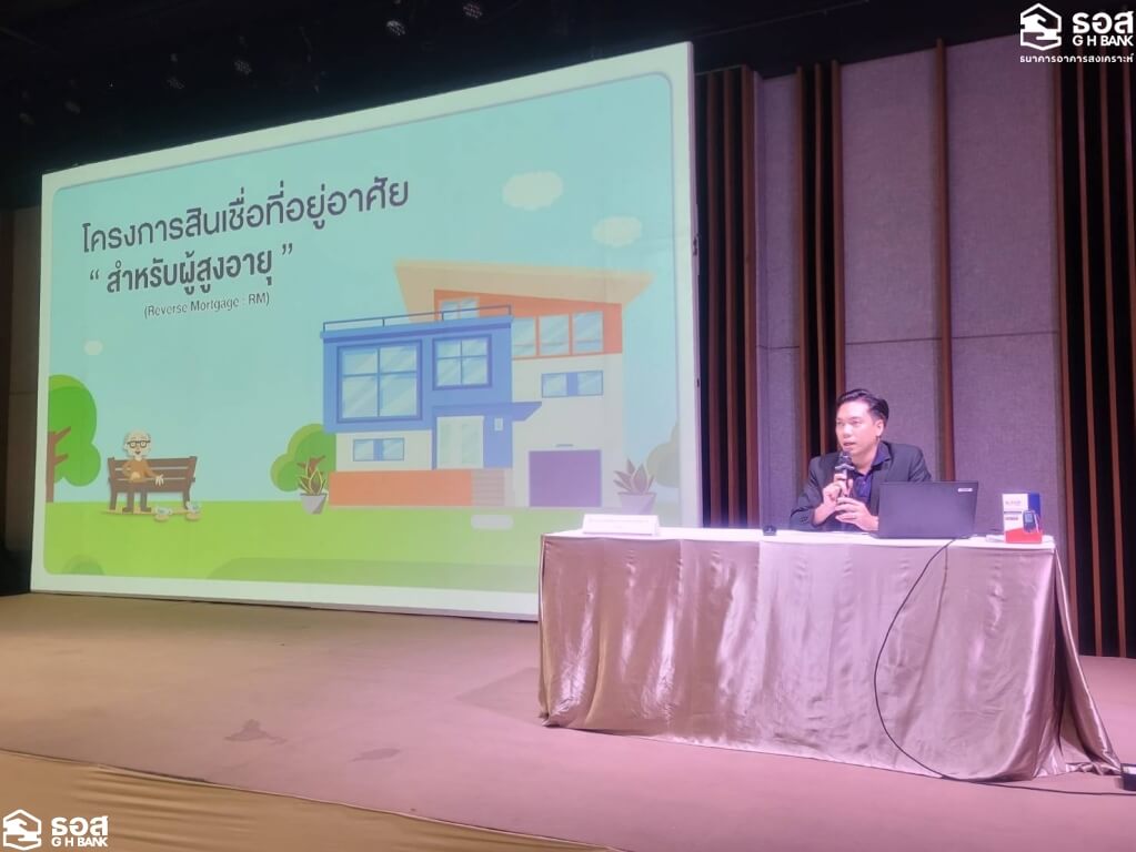 เมื่อวันที่ 17 กรกฎาคม 2566 ผู้บริหารธนาคาร พร้อมด้วยผู้ปฏิบัติงานฝ่ายนโยบายสินเชื่อธุรกิจและภาครัฐ สาขาสมุทรสงคราม จัดกิจกรรม “โครงการ Financial Literacy สำหรับผู้สูงอายุ ปี 2566” ร่วมกับกรมกิจการผู้สูงอายุ กระทรวงการพัฒนาสังคมและความมั่นคงของมนุษย์ (พม.) ในการจัดสัมมนาเตรียมตัวก่อนเกษียณบุคลากร พม. ประจำปี 2566 โดยมีเป้าหมายเพื่อให้ความรู้ความเข้าใจเกี่ยวกับโครงการสินเชื่อที่อยู่อาศัยสำหรับผู้สูงอายุ (Reverse Mortgage : RM) รวมถึงผลิตภัณฑ์ต่าง ๆ ที่ธนาคารจัดทำขึ้น เพื่อรองรับสังคมผู้สูงอายุในอนาคต พร้อมทั้งปูพื้นฐานการเงิน (Financial Literacy) เพื่อเตรียมเข้าสู่สังคมผู้สูงวัยในประเทศไทย (Aging Society) กลุ่มเป้าหมายในครั้งนี้ เป็นกลุ่มข้าราชการ พนักงานราชการ และลูกจ้างของกระทรวงพัฒนาสังคมและความมั่นคงของมนุษย์ ซึ่งกำลังจะเกษียณอายุราชการ โดยมีเป้าหมายวัดระดับของการรับรู้สินเชื่อเพื่อที่อยู่อาศัย (Housing Loan) และการเงิน (Financial Literacy) สำหรับผู้สูงอายุผู้เข้าร่วมกิจกรรมมากกว่า 80% ขึ้นไป ในการนี้ธนาคารได้จัดทีมเจ้าหน้าที่ของธนาคารเป็นวิทยากรบรรยายในหัวข้อ โครงการสินเชื่อที่อยู่อาศัยสำหรับผู้สูงอายุ (Reverse Mortgage : RM) และสินเชื่อสำหรับผู้สูงอายุ และสลากออมทรัพย์ ธอส. ทั้งนี้ กิจกรรมดังกล่าวจัดขึ้น ณ โรงแรมริเวอร์ตัน อัมพวา จังหวัดสมุทรสงคราม