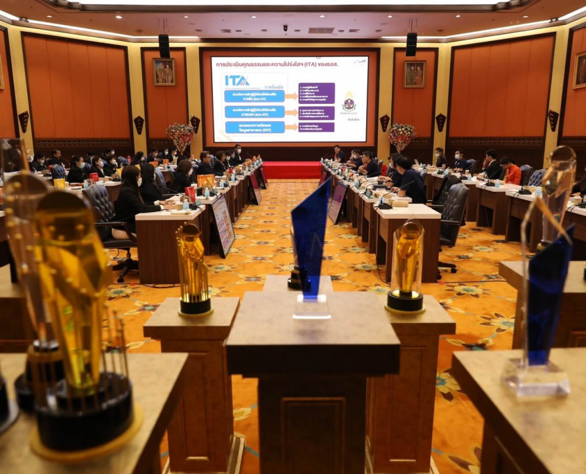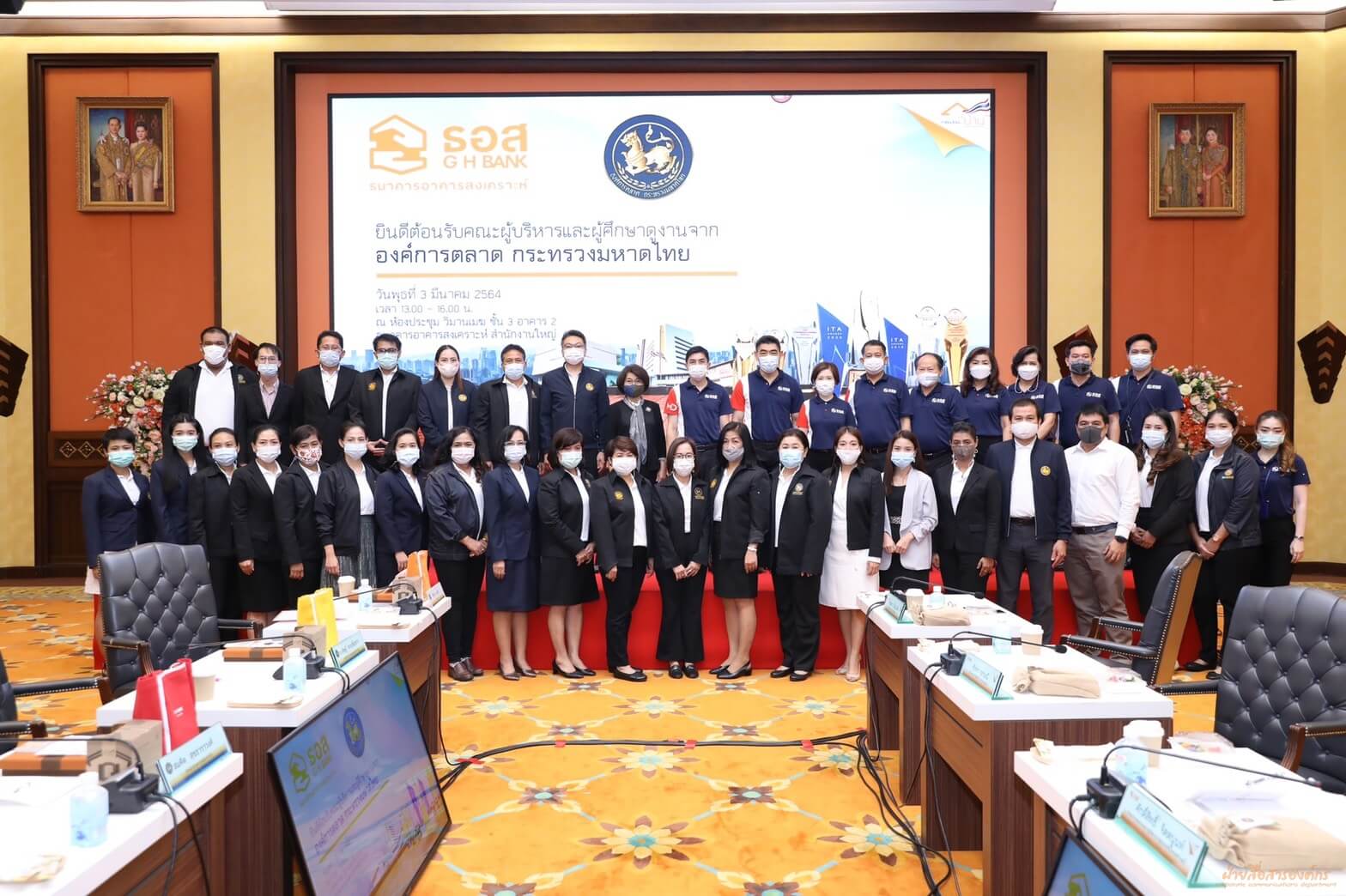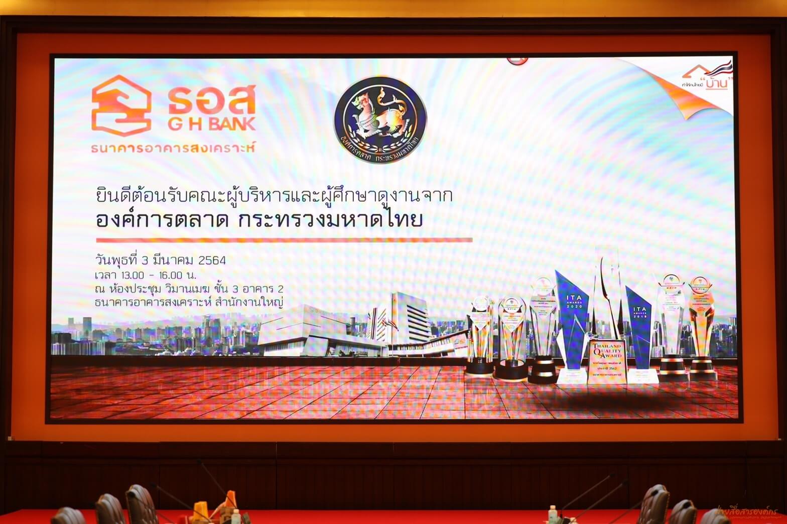 วันนี้ (3 มีนาคม 2564) ธนาคารอาคารสงเคราะห์ ในฐานะองค์กรที่เป็น Best Practice ที่ได้รางวัลประเมินคุณธรรมและความโปร่งใสในการดำเนินงานของหน่วยงานภาครัฐ (ITA) ได้ให้การต้อนรับคณะผู้บริหารจากองค์การตลาด กระทรวงมหาดไทย นำโดยคุณญาใจ พัฒนสุขวสันต์ ที่ปรึกษา และ คุณวิทยา ทรัพย์เย็น รองผู้อำนวยการองค์การตลาด ซึ่งมีคุณฉัตรชัย ศิริไล กรรมการผู้จัดการ พร้อมด้วยคณะผู้บริหารของธนาคาร ร่วมแบ่งปันความรู้ ประสบการณ์ วิธีปฏิบัติที่เป็นเลิศในการประเมินคุณธรรมและความโปร่งใสในการดำเนินงาน ทั้งการใช้เทคนิคการเพิ่มระดับคะแนน ITA สร้างแรงบันดาลในการปฏิบัติงาน และบทบาทของผู้บริหารที่มีส่วนช่วยสนับสนุนภายในองค์กร รวมถึงการนำองค์ความรู้ต่าง ๆ ขององค์กร อาทิ กระบวนการสื่อสารของผู้บริหารระดับสูง (3C) เป็นต้น มาช่วยพัฒนางาน ส่งผลให้ธนาคารมีผลคะแนน ITA สูงสุดเป็นอันดับหนึ่ง ติดต่อกัน 4 ปี อีกทั้งยังเปิดโอกาสให้ซักถามและได้แบ่งปันประสบการณ์ เพื่อยกระดับคะแนน ITA ขององค์การตลาด กระทรวงมหาดไทยให้อยู่ในระดับ A (85 คะแนนขึ้นไป) ซึ่งคณะผู้เข้าศึกษาดูงานได้รับความรู้และชื่นชมแนวทางการบริหารจัดการของธนาคารเป็นอย่างยิ่ง ทั้งนี้ การแลกเปลี่ยนเรียนรู้ดังกล่าวจัดขึ้น ณ ห้องวิมานเมฆ ชั้น 3 อาคาร 2 ธนาคารอาคารสงเคราะห์ สำนักงานใหญ่