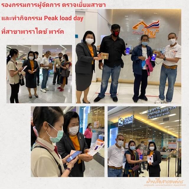 เมื่อวันที่ 31 มีนาคม 2564 คุณฉัตร์รวี จิรกุลเมธาพัฒน์ รองกรรมการผู้จัดการ กลุ่มงานสาขา ได้ทำกิจกรรม Floor Walk เพื่อสอบถามถึงปัญหา อุปสรรคในการปฏิบัติงาน และการให้บริการลูกค้า นอกจากนี้ได้ทำกิจกรรม Peak Load Day ณ ธนาคารอาคารสงเคราะห์ สาขาพาราไดซ์ พาร์ค และสาขาเมกา บางนา เพื่อให้คำแนะนำด้านการปฏิบัติงาน การให้บริการ และกลยุทธ์ในการบรรลุเป้าหมายในด้านต่างๆ พร้อมทั้งเชิญชวนให้ลูกค้าดาวน์โหลดและลงทะเบียนสมัครใช้บริการ Mobile Application : GHB ALL ในการสนับสนุนแนวทาง Transformation to Digital Service ของธนาคารฯ โดยมอบของที่ระลึกให้กับลูกค้าที่ลงทะเบียนใช้งาน Application GHB ALL สร้างสีสันและบรรยากาศในการให้บริการเป็นอย่างดี เพื่อเป็น ธอส. ธนาคาร บ้าน ของคนไทย ธอส.ทำให้คนไทย มีบ้านซึ่งสอดคล้องกับการดำเนินการตามแนวทาง การประเมินผลการดำเนินงานรัฐวิสาหกิจตามระบบประเมินผลใหม่ (State Enterprise Assessment Model: SE-AM) ด้านการมุ่งเน้นลูกค้า และสอดคล้องกับค่านิยม GIVE +4 ในด้านการให้บริการที่เป็นเลิศ ( Excellent Service )