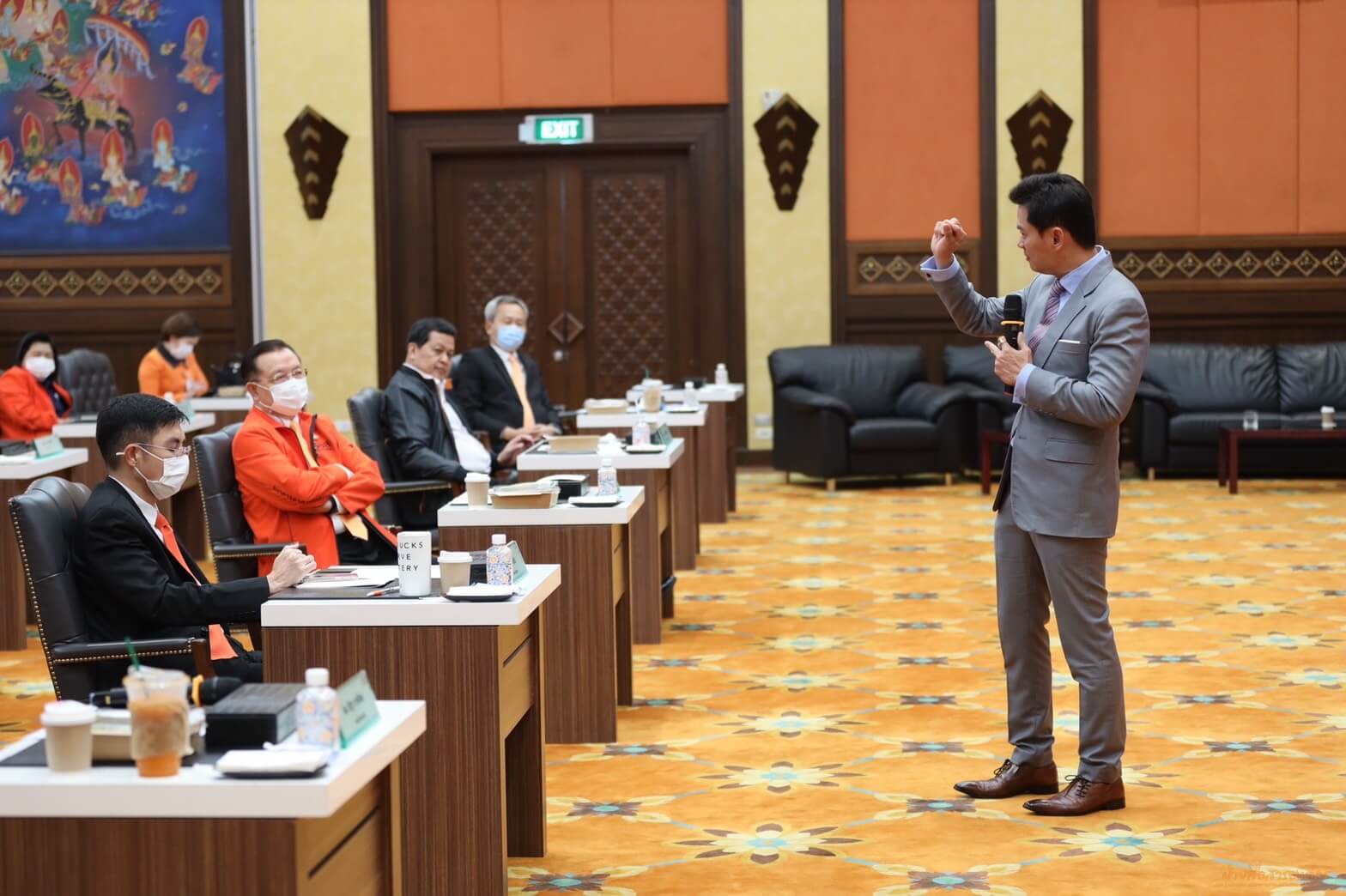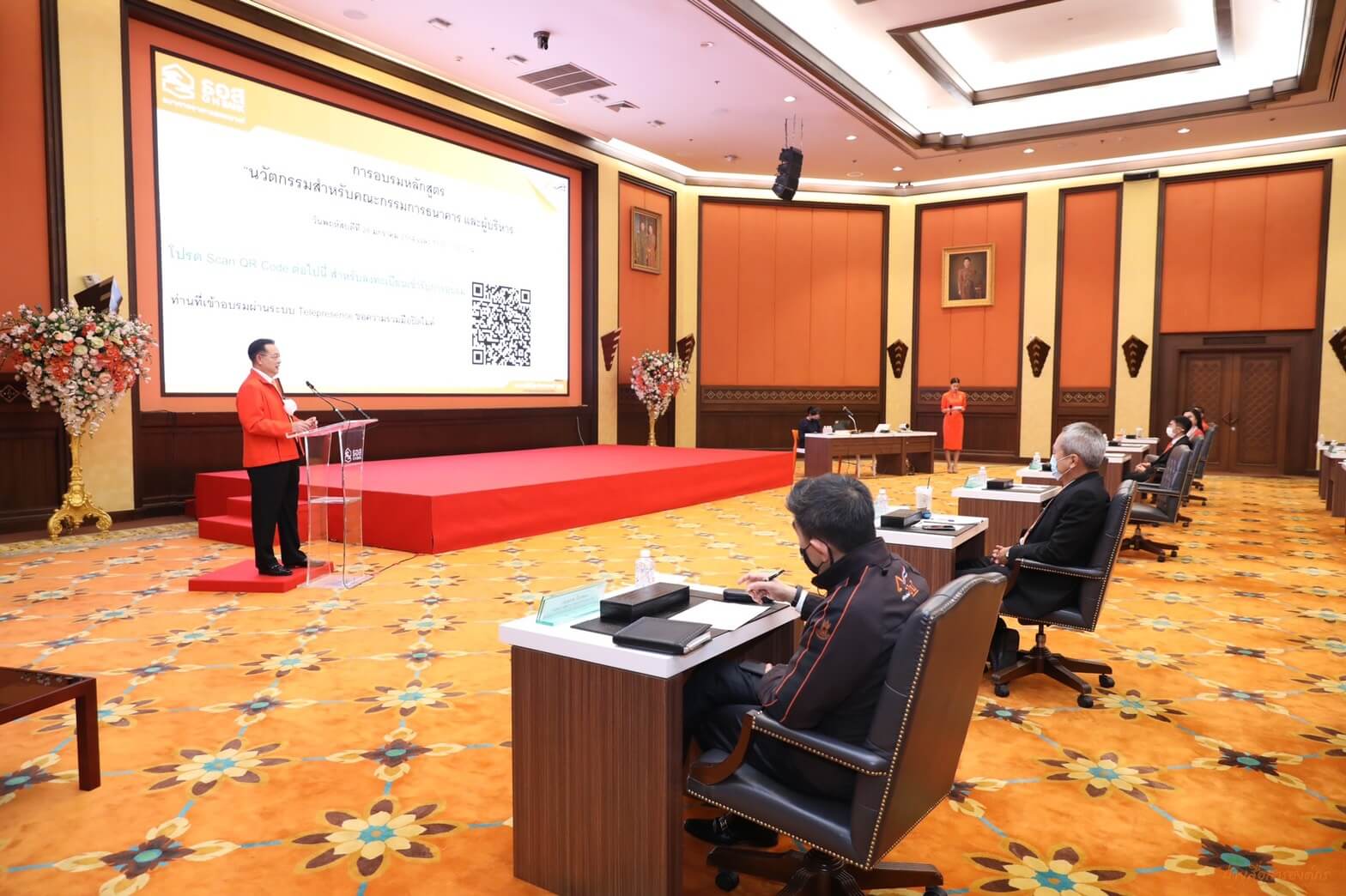 วันนี้ (วันที่ 28 ม.ค. 64) ประธานกรรมการธนาคาร (คุณปริญญา พัฒนภักดี) เป็นประธานกล่าวเปิดการอบรมหลักสูตร “นวัตกรรมสำหรับคณะกรรมการธนาคาร และผู้บริหาร” พร้อมทั้งเข้ารับการอบรม ร่วมกับคณะกรรมการธนาคาร กรรมการผู้จัดการ ผู้บริหารระดับสูง ผู้อำนวยการฝ่าย/สำนัก/ภาค/ศูนย์ และคณะทำงานที่เกี่ยวข้อง โดยได้รับเกียรติจากศ.ดร.สุชัชวีร์ สุวรรณสวัสดิ์ อธิการบดีสถาบันเทคโนโลยีพระจอมเกล้าเจ้าคุณทหารลาดกระบัง เป็นวิทยากรบรรยาย เพื่อเป็นการปฏิบัติตามข้อปฏิบัติในการป้องกันและลดความเสี่ยงในการติดเชื้อไวรัสโคโรนา – 19 (COVID – 19) ของธนาคาร ฝ่ายพบร. ได้แบ่งรูปแบบการอบรมเป็น 2 แบบ ได้แก่ การอบรมในชั้นเรียน ณ ห้องวิมานเมฆ ชั้น 3 อาคาร 2 และการอบรม online ผ่านระบบ Telepresence