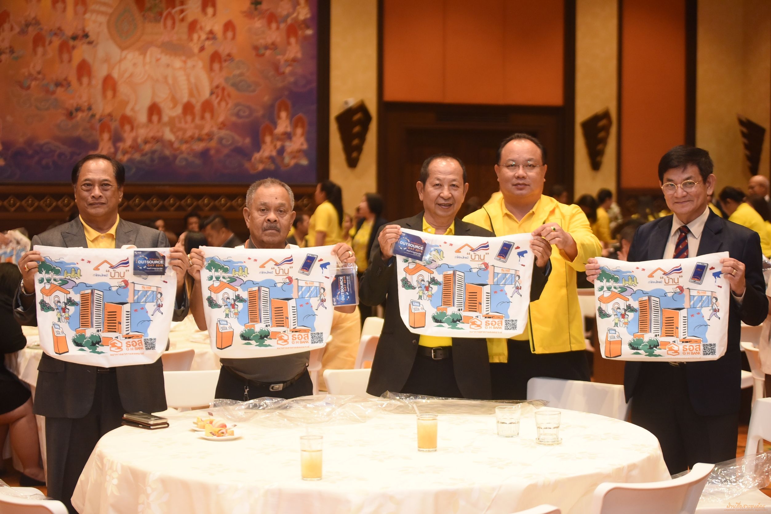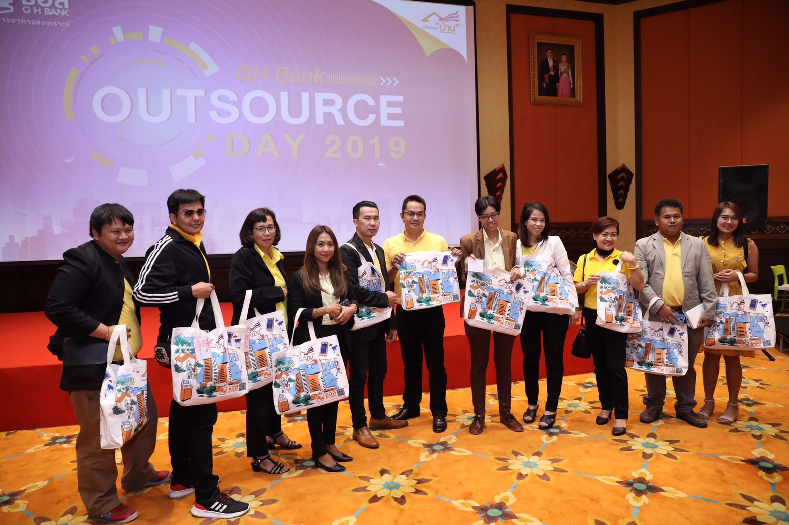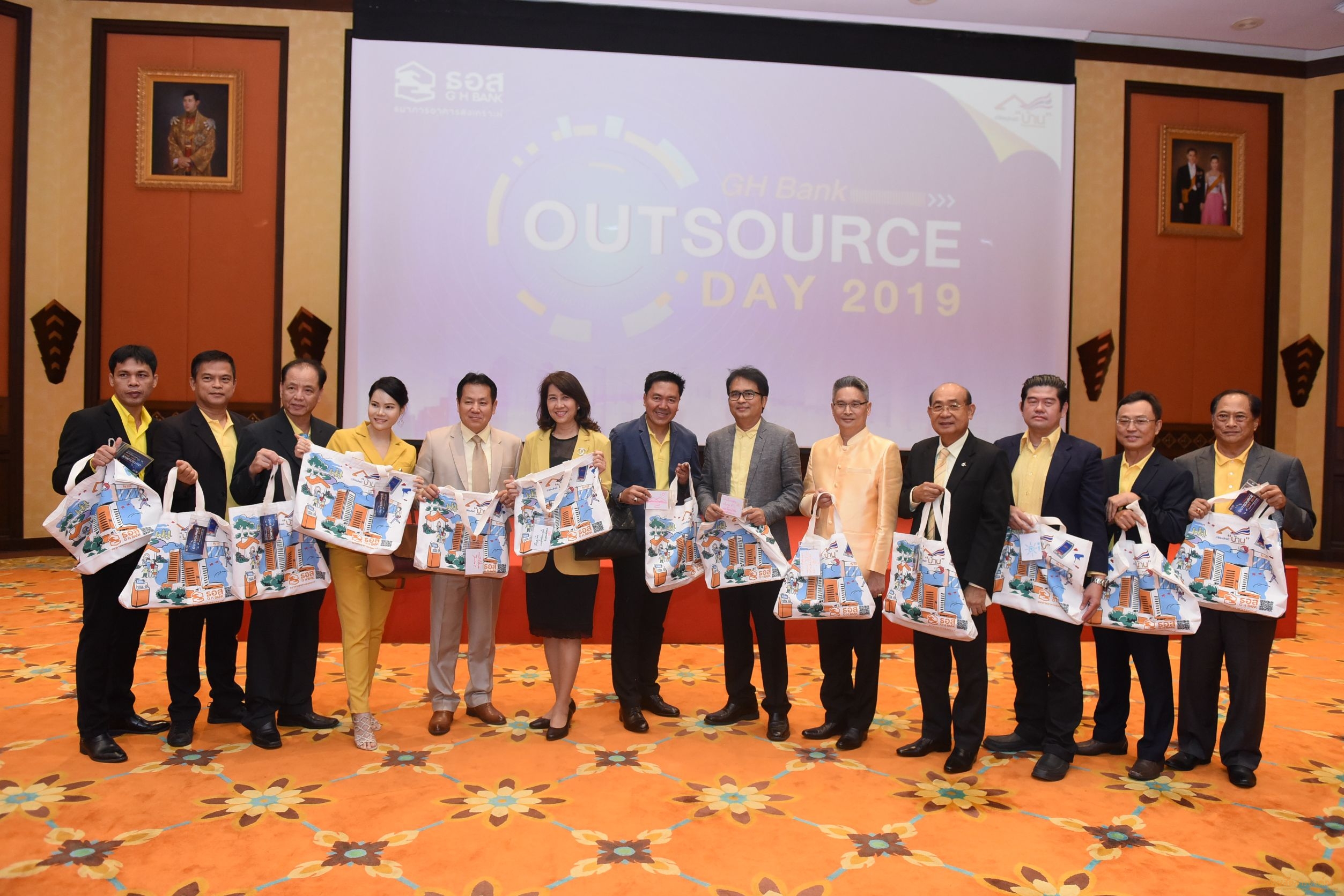 คุณฉัตรชัย ศิริไล กรรมการผู้จัดการ เป็นประธานในงาน GHBank Outsource Day 2019 พร้อมด้วยผู้บริหารธนาคาร เข้าร่วมงาน โดยมีบริษัท Outsource ที่เป็นคู่ค้า คู่ความร่วมมือที่สำคัญของธนาคารทั่วประเทศมาร่วมประชุม โดยมีประธานคณะกรรมการ Outsource (คุณทรงเดช ดารามาศ) ผู้ช่วยกรรมการผู้จัดการ สายงานปฏิบัติการลูกค้ารายย่อย เป็นผู้กล่าวรายงาน ทั้งนี้ เพื่อให้บริษัท Outsource ได้รับทราบและเข้าใจ วิสัยทัศน์ ค่านิยม และแนวทางปฏิบัติสำหรับผู้ให้บริการจากภายนอกของธนาคาร รวมถึงแลกเปลี่ยนประเด็นปัญหาอุปสรรค และนำไปใช้ในการปรับปรุงกระบวนการทำงานร่วมกัน ให้ตรงกับความต้องการที่แท้จริง โดยมีคุณกมลภพ วีระพละ รองกรรมการผู้จัดการ กลุ่มงานการเงินและบัญชี นำ VOC ปี 2561 ของบริษัทฯ มาตอบแนวทางการดำเนินงานต่อข้อเสนอแนะ เพื่อยกระดับความสัมพันธ์ที่ดีอยู่แล้วให้แนบแน่นยิ่งขึ้น โดยการจัดในครั้งนี้ มีเป้าหมายร่วมกันเพื่อพัฒนาการให้บริการตามพันธกิจ “ทำให้คนไทยมีบ้าน” นอกจากนั้น ยังได้ร่วมกิจกรรม CSR ถุงผ้าลดโลกร้อน ภายในงานอีกด้วย ณ ห้องวิมานเมฆ ชั้น 3 อาคาร 2 สนญ.