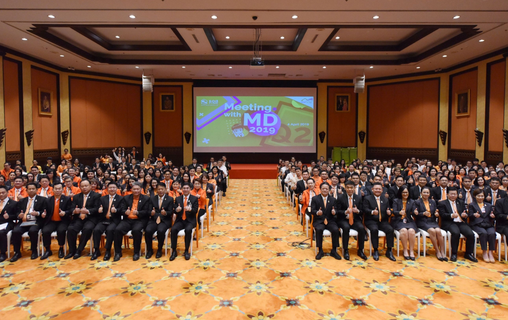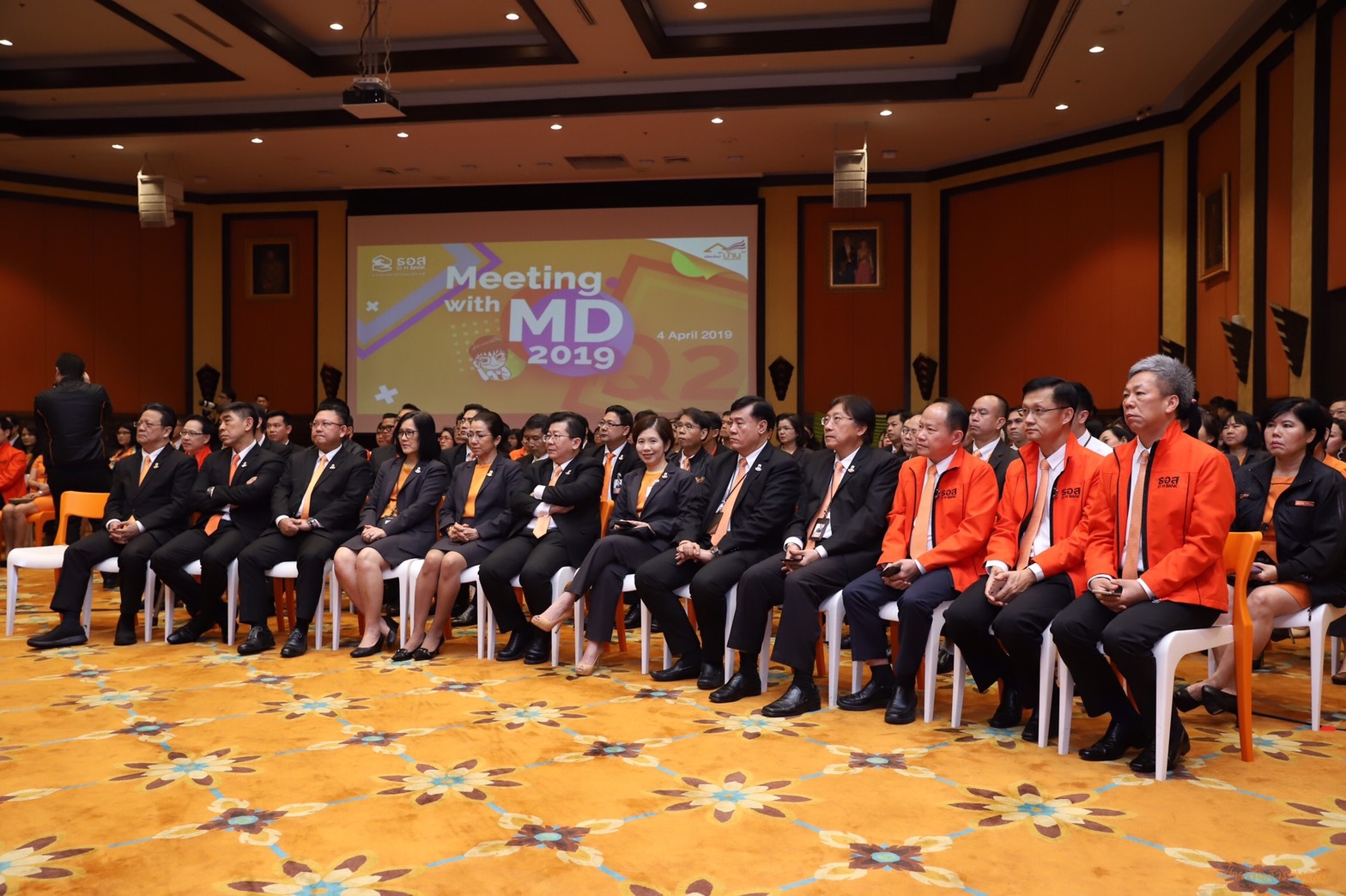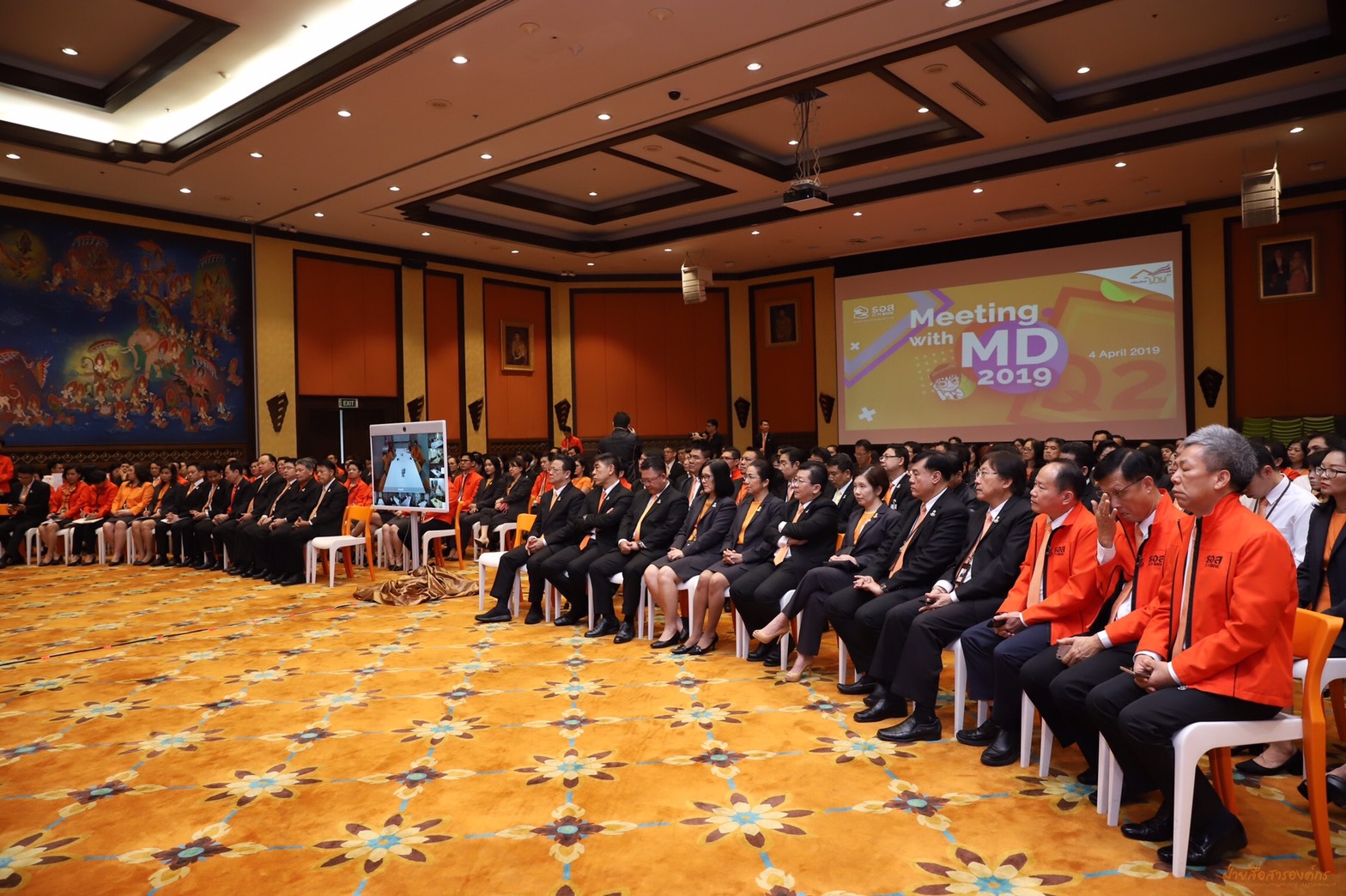 คุณฉัตรชัย ศิริไล กรรมการผู้จัดการ ประธานในงาน Meeting with MD ประจำไตรมาส 2/2562 โดยมีผู้บริหารและพนักงานเข้าร่วมงานกว่า 250 คน เพื่ออัพเดทเรื่องราวที่สำคัญต่างๆ ที่เกิดขึ้นภายในองค์กรร่วมกัน พร้อมตอบข้อซักถามพนักงานแบบ เคลียร์..จบ..ครบทุกคำถาม เพื่อร่วมพัฒนาองค์กรไปด้วยกัน ซึ่งมีการถ่ายทอดสดผ่านทาง Telepresence และ FB Infosupermarket เพื่อให้พนักงานสาขาติดตามรับชมไปพร้อมๆ กัน ณ ห้องวิมานเมฆ อาคาร 2 ชั้น 3