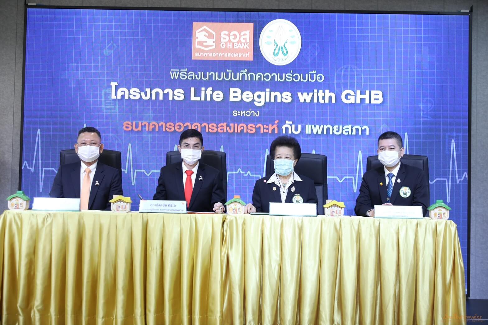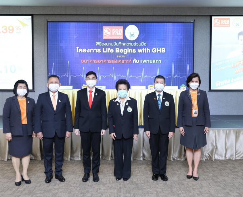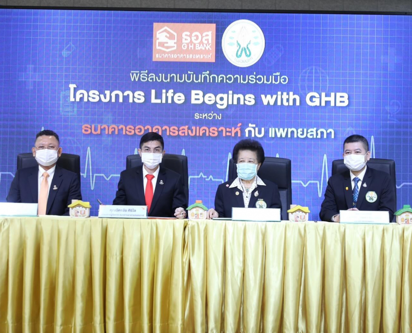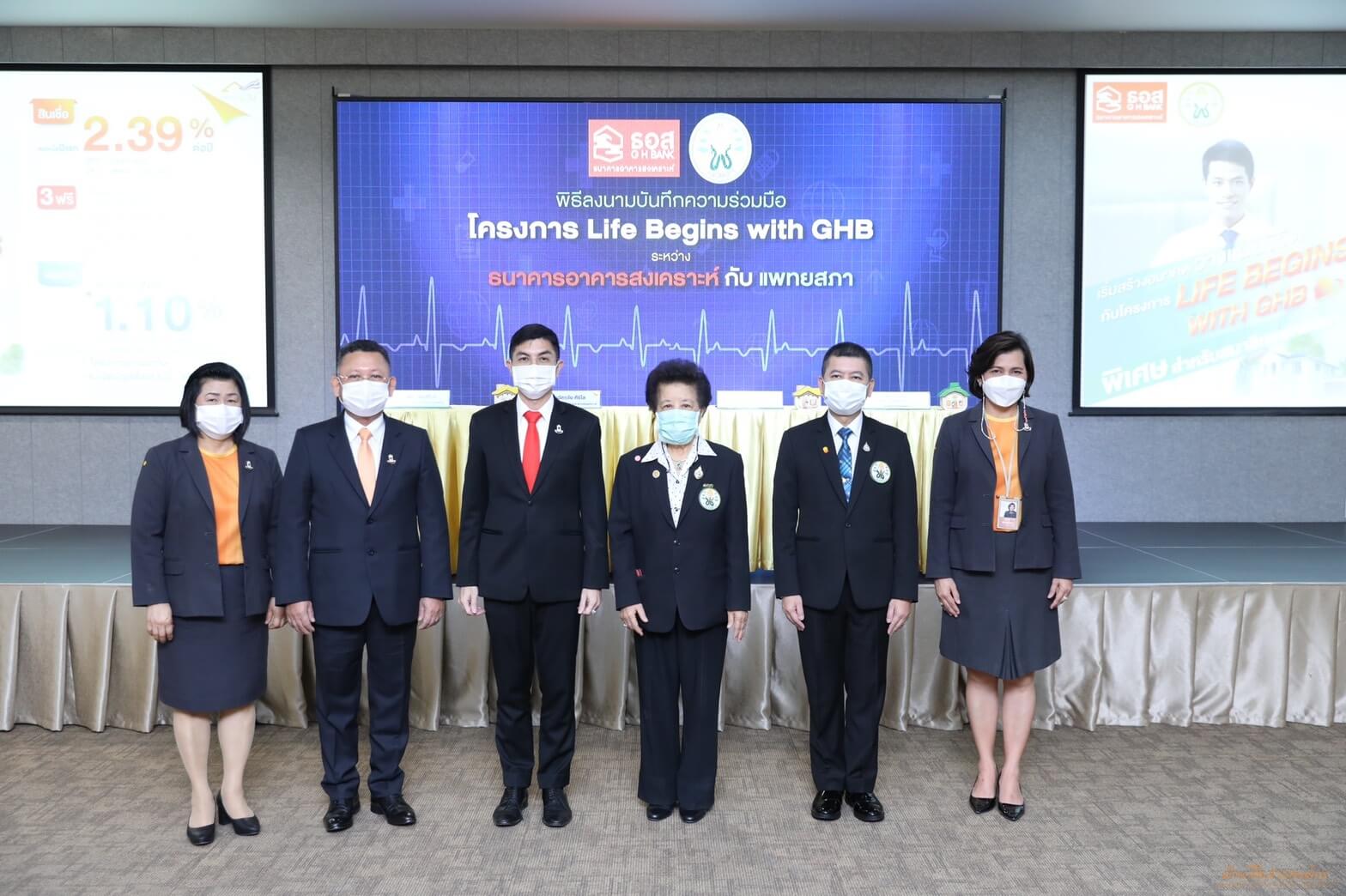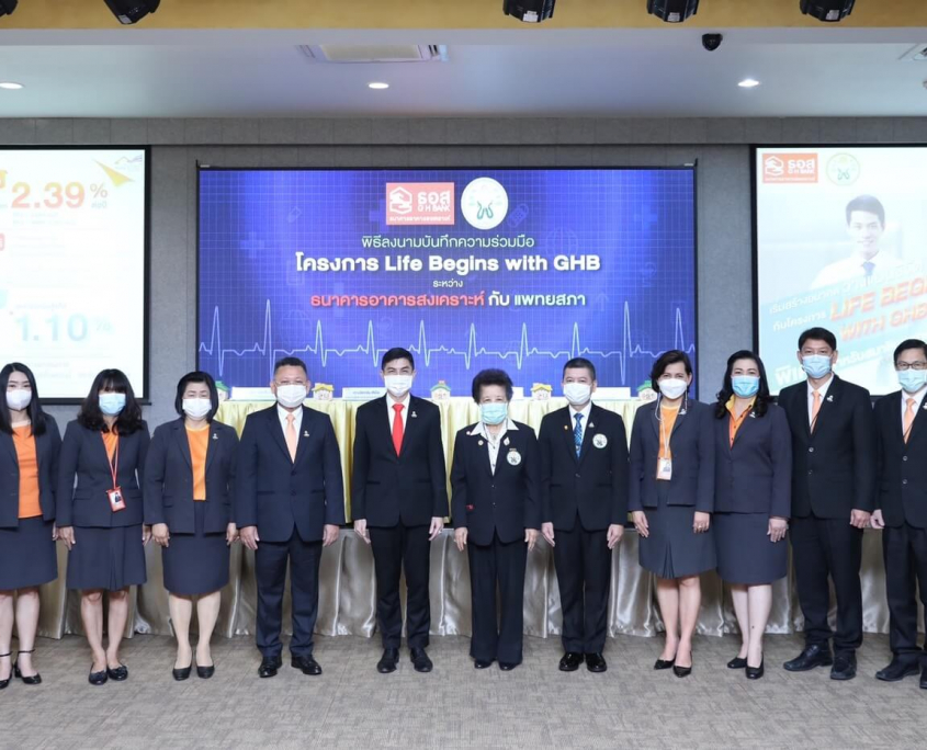 วันนี้ (8 กุมภาพันธ์ 2564) คุณฉัตรชัย ศิริไล กรรมการผู้จัดการ พร้อมด้วย ศาสตราจารย์เกียรติคุณ แพทย์หญิงสมศรี เผ่าสวัสดิ์ นายกแพทยสภา ร่วมลงนามบันทึกข้อตกลง (MOU) ความร่วมมือตามโครงการ Life Begins with GHB ระหว่างธนาคารอาคารสงเคราะห์ กับ แพทยสภา เพื่อส่งเสริมให้สมาชิกของแพทยสภากว่า 60,000 คนได้มีที่อยู่อาศัยเป็นของตนเองและมีการออมเงินเพื่อสร้างความมั่นคงกับผลิตภัณฑ์สินเชื่อและเงินฝากอัตราดอกเบี้ยพิเศษของธนาคาร โดยมีคุณวิทยา แสนภักดี รองกรรมการผู้จัดการ กลุ่มงานการตลาด คุณฉัตร์รวี จิรกุลเมธาพัฒน์ รองกรรมการผู้จัดการ กลุ่มงานสาขา พล.อ.ต.นพ.อิทธพร คณะเจริญ เลขาธิการแพทยสภา พร้อมด้วยคณะผู้บริหารระดับสูงของธนาคาร และสื่อมวลชน ร่วมในพิธี ทั้งนี้ พิธีลงนามความร่วมมือดังกล่าวจัดขึ้น ณ อาคารสภาวิชาชีพ ชั้น 14 กระทรวงสาธารณสุข จ.นนทบุรี