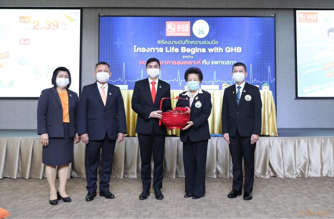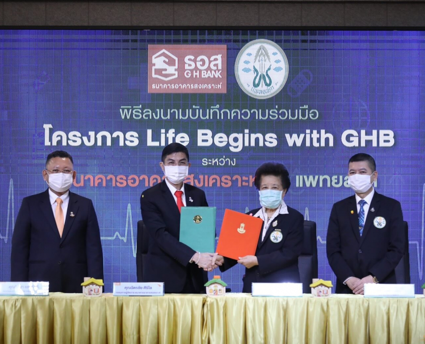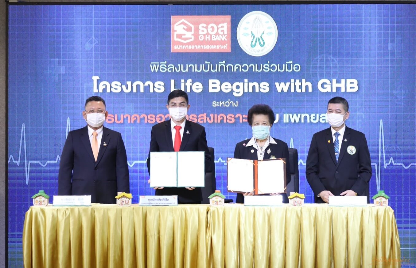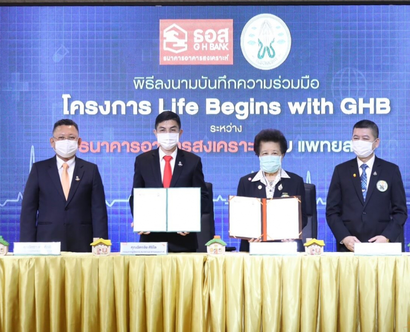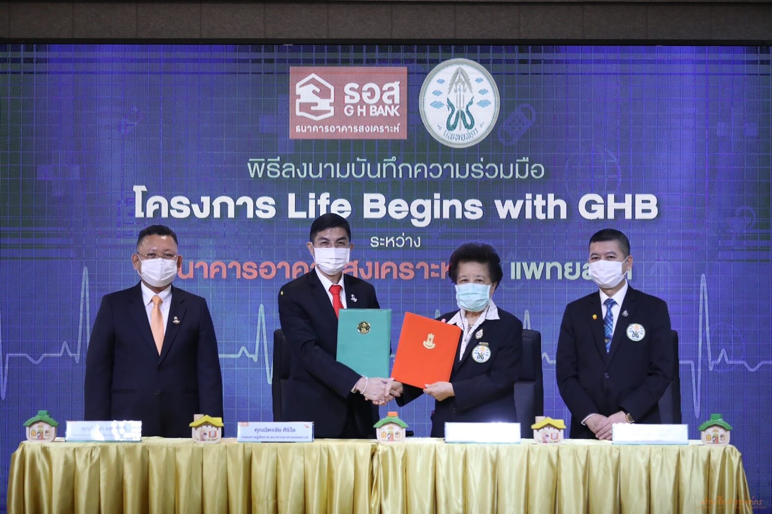 วันนี้ (8 กุมภาพันธ์ 2564) คุณฉัตรชัย ศิริไล กรรมการผู้จัดการ พร้อมด้วย ศาสตราจารย์เกียรติคุณ แพทย์หญิงสมศรี เผ่าสวัสดิ์ นายกแพทยสภา ร่วมลงนามบันทึกข้อตกลง (MOU) ความร่วมมือตามโครงการ Life Begins with GHB ระหว่างธนาคารอาคารสงเคราะห์ กับ แพทยสภา เพื่อส่งเสริมให้สมาชิกของแพทยสภากว่า 60,000 คนได้มีที่อยู่อาศัยเป็นของตนเองและมีการออมเงินเพื่อสร้างความมั่นคงกับผลิตภัณฑ์สินเชื่อและเงินฝากอัตราดอกเบี้ยพิเศษของธนาคาร โดยมีคุณวิทยา แสนภักดี รองกรรมการผู้จัดการ กลุ่มงานการตลาด คุณฉัตร์รวี จิรกุลเมธาพัฒน์ รองกรรมการผู้จัดการ กลุ่มงานสาขา พล.อ.ต.นพ.อิทธพร คณะเจริญ เลขาธิการแพทยสภา พร้อมด้วยคณะผู้บริหารระดับสูงของธนาคาร และสื่อมวลชน ร่วมในพิธี ทั้งนี้ พิธีลงนามความร่วมมือดังกล่าวจัดขึ้น ณ อาคารสภาวิชาชีพ ชั้น 14 กระทรวงสาธารณสุข จ.นนทบุรี