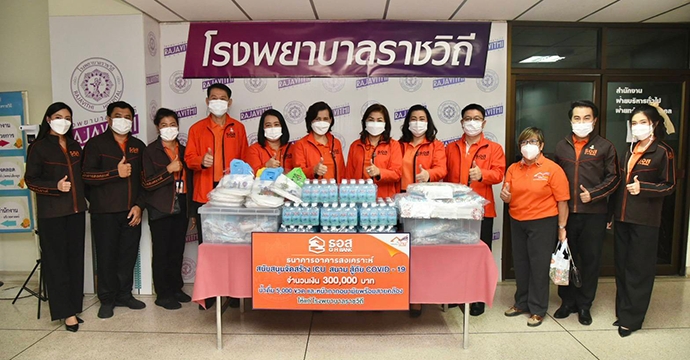 นายฉัตรชัย ศิริไล กรรมการผู้จัดการ ธนาคารอาคารสงเคราะห์ (ธอส.) เปิดเผยว่า เพื่อเป็นการสนับสนุนการดำเนินงานทางการแพทย์ ในการให้ความช่วยเหลือดูแลรักษาประชาชนที่เป็นผู้ป่วยติดเชื้อไวรัสโคโรนา 2019 หรือ COVID-19 ซึ่งปัจจุบันยังคงพบว่ามีจำนวนผู้ติดเชื้อรวมทั้งผู้ป่วยวิกฤติที่มีอาการรุนแรงเพิ่มขึ้นอย่างต่อเนื่อง จึงได้มอบหมายให้ผู้ช่วยกรรมการผู้จัดการธนาคาร ประกอบด้วย นายภพกร เจริญลาภ นางภานิณี มโนสันติ์ นางกรุณา เหมือนเตย และนางสุดจิตตรา คำดี เป็นผู้แทนธนาคาร มอบเงินสนับสนุน จำนวน 300,000 บาท ให้แก่ โรงพยาบาลราชวิถี สำหรับจัดสร้างไอซียูสนามที่ใช้รองรับการรักษาผู้ป่วยวิกฤตที่มีอาการรุนแรง โดยมี นายแพทย์สมเกียรติ ลลิตวงศา ผู้อำนวยการโรงพยาบาลราชวิถี และคณะ เป็นผู้รับมอบ อีกทั้งยังได้รับเกียรติจากนายปริญญา พัฒนภักดี และนายขรรค์ ประจวบเหมาะ ร่วมในพิธีส่งมอบครั้งนี้ด้วย นอกจากนี้ ธนาคารยังได้มอบน้ำดื่มของธนาคาร จำนวน 5,000 ขวด หน้ากากอนามัย พร้อมสายคล้องหน้ากากอนามัยที่พนักงานธนาคารจัดทำขึ้นด้วยจิตอาสา นำไปแจกจ่ายให้แก่บุคลากรทางการแพทย์ รวมถึงประชาชนที่มารอรับบริการจากโรงพยาบาลอีกด้วย