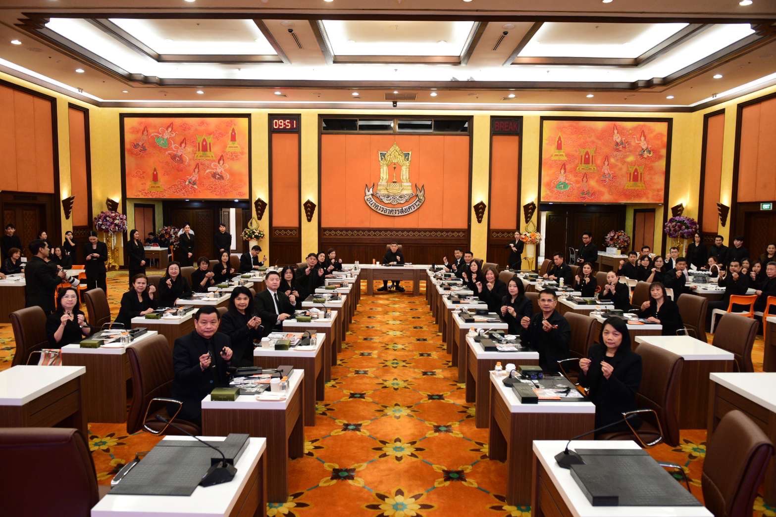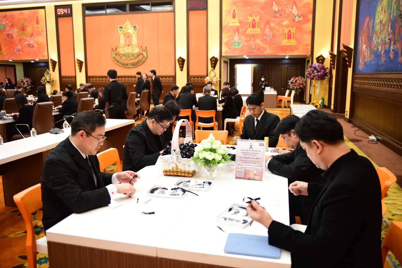 นายกมลภพ วีระพละ กรรมการผู้จัดการธนาคารอาคารสงเคราะห์ (ธอส.) พร้อมด้วยคณะผู้บริหาร และพนักงานธนาคาร ร่วมกิจกรรมจิตอาสา “ประดิษฐ์ริบบิ้นสีดำ” แบบโบว์สีดำ และโบว์ไขว้สีดำ สำหรับใช้ติดเครื่องแต่งกายเพื่อเป็นสัญลักษณ์ของการแสดงความไว้อาลัยและน้อมรำลึกในพระมหากรุณาธิคุณของสมเด็จพระนางเจ้าสิริกิติ์ พระบรมราชินีนาถ พระบรมราชชนนีพันปีหลวง สะท้อนถึงการสำนึกในพระมหากรุณาธิคุณที่ทรงมีต่อประเทศชาติและพสกนิกรชาวไทย โดยริบบิ้นไว้อาลัยที่ร่วมกันประดิษฐ์ขึ้น ธนาคารได้นำไปมอบให้แก่ประชาชนที่เข้าร่วมกราบถวายบังคมพระบรมศพสมเด็จพระนางเจ้าสิริกิติ์ พระบรมราชินีนาถ พระบรมราชชนนีพันปีหลวง จำนวน 1,000 ชิ้น พร้อมด้วยน้ำดื่ม จำนวน 4,000 ขวด ณ บริเวณท้องสนามหลวง เมื่อวันที่ 19 พฤศจิกายน 2568