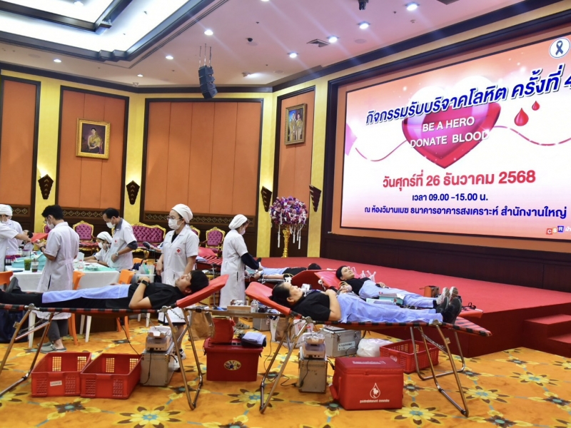 ธนาคารอาคารสงเคราะห์ (ธอส.) ร่วมกับศูนย์บริการโลหิตแห่งชาติ สภากาชาดไทย จัดกิจกรรม รับบริจาคโลหิต ครั้งที่ 4 ประจำปี 2568 โดยในปีนี้ธนาคารจัดกิจกรรมรับบริจาคโลหิต จำนวนรวม 4 ครั้ง มีผู้เข้าร่วม จำนวน 888 ราย ได้รับโลหิตรวม 378,850 ซีซี ซึ่งโลหิตที่ได้รับจะถูกนำไปสำรองสำหรับผู้ป่วยในโรงพยาบาลต่าง ๆ ทั่วประเทศ รวมถึงสำรองไว้สำหรับโรงพยาบาลในพื้นที่ชายแดนไทย - กัมพูชา เพื่อใช้รักษากำลังพลและประชาชน ที่ได้รับผลกระทบจากสถานการณ์ความไม่สงบ ซึ่งการดำเนินการในครั้งนี้เป็นการส่งเสริมให้พนักงานธนาคาร มีส่วนร่วมเสียสละ เพื่อทำประโยชน์ในการช่วยเหลือผู้อื่น สอดคล้องกับนโยบายด้านการแสดงความรับผิดชอบ ต่อสังคมและสิ่งแวดล้อมหรือ CSR ที่ ธอส. ให้ความสำคัญและดำเนินการมาอย่างต่อเนื่อง ควบคู่กับการดำเนินงานตามภารกิจหลักในการสนับสนุนสินเชื่อเพื่อที่อยู่อาศัยแก่ประชาชนโดยเฉพาะกลุ่มผู้มีรายได้น้อยและปานกลาง ให้สามารถมีที่อยู่อาศัยเป็นของตนเองมาตลอดระยะเวลากว่า 72 ปี ทั้งนี้ กิจกรรมดังกล่าว จัดขึ้น ณ ห้องวิมานเมฆ ธนาคารอาคารสงเคราะห์ สำนักงานใหญ่ เมื่อวันที่ 26 ธันวาคม 2568
