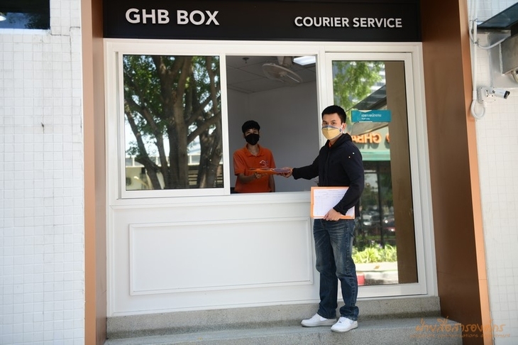 ธนาคารได้จัดสถานที่อาคาร Iron House 1 และ 2 ให้กับบริษัทนิติกรรม ใช้เตรียมเอกสารในการ จดทะเบียนสิทธิและนิติกรรม ให้กับลูกค้าในเขตกรุงเทพและปริมณฑล รองรับมาตรการ Social distancing ในอาคาร 2 นั้น เพื่อเป็นการอำนวยความสะดวก ในการส่งแฟ้มและเอกสารที่เกี่ยวกับการทำนิติกรรม โดยไม่ผ่านพื้นที่ ซึ่งลูกค้าใช้บริการบริเวณ โถงงานฝ่ายพิธีการสินเชื่อ ฝ่ายบริหารสำนักงานและกิจการสาขา ได้ทำการปรับปรุงพื้นที่ด้านหลังอาคาร 2 บริเวณ ร้านกาแฟอเมซอล จัดทำ GHB BOX Courier service สำหรับให้บริษัทนิติกรรม รับ-ส่งแฟ้มและเอกสารในการปฏิบัติงานระหว่าง Iron House 1, 2 และอาคาร 2 ซึ่งจะทำให้การประสานงานระหว่างธนาคารและบริษัทนิติกรรม มีประสิทธิภาพ มีความปลอดภัย และสะดวกมากขึ้น ทั้งนี้ ยังใช้ GHB BOX Courier service เป็นจุดรับส่งแฟ้ม / สัญญากู้เงิน ระหว่าง Clearing สาขา กับส่วนนิติกรรม เพื่อลดการแพร่ระบาดเชื้อ Covid 19 อีกด้วย