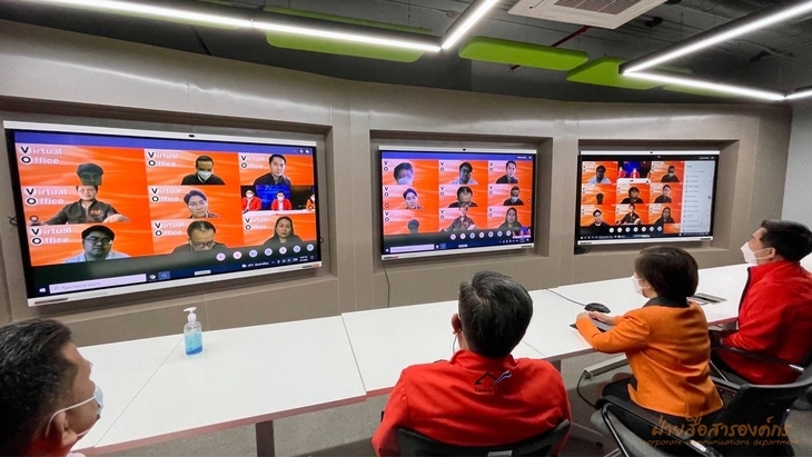 วันที่ 1 มีนาคม 2565 เวลา 8.30 น. คุณธิดาพร มีกิ่งทอง รองกรรมการผู้จัดการ กลุ่มงานปฏิบัติการ และรักษาการผู้ช่วยกรรมการผู้จัดการ สายงานกำกับกฎเกณฑ์และกฎหมาย พร้อมด้วยคุณชัยณรงค์ สวัสดีวงษา ผู้อำนวยการฝ่ายบริหารสำนักงานและกิจการสาขา และรักษาการผู้ช่วยกรรมการผู้จัดการ สายงานสนับสนุน คุณพิศัลย์ กองทรัพย์ ผู้อำนวยการฝ่ายจัดหาและการพัสดุ คุณนันทวุฒิ สุขสว่าง ผู้อำนวยการฝ่ายกฎหมาย คุณกฤษดา ปัทมะผลิน ผู้อำนวยการฝ่ายกำกับการปฏิบัติงาน คุณฉัตรชัย โชติทิฆัมพร ผู้ช่วยผู้อำนวยการฝ่ายบริหารสำนักงานและกิจการสาขา คุณณัฐวุฒิ มั่นคง ผู้ช่วยผู้อำนวยการฝ่ายกฎหมาย และคุณนิธิพล เชื้อแสดง ผู้ช่วยผู้อำนวยการฝ่ายกำกับการปฏิบัติงาน ได้ทำกิจกรรม Peak Load Day : “Kick Off โครงการ Virtual Office กลุ่มงานปฏิบัติการ” ซึ่งเป็นโครงการตามแผนยุทธศาสตร์ธนาคาร ประจำปี 2565 เพื่อสนับสนุนวัตถุประสงค์เชิงยุทธศาสตร์ SO 3 ยกระดับการบริการลูกค้า และกระบวนงานสนับสนุน รองรับการเป็นธนาคารดิจิทัล โดยโครงการ Virtual Office กลุ่มงานปฏิบัติการ มีลักษณะโครงการเป็นการทำงานที่บ้านแบบถาวร (Permanent Work From Home) เพื่อเตรียมความพร้อมรองรับการทำงานภายใต้วิถีใหม่ (New Normal) โดยนำเทคโนโลยีเข้ามาช่วยในการปฏิบัติงาน ทำให้ผู้ปฏิบัติงานสามารถลดระยะเวลาการทำงาน ลดภาระค่าใช้จ่ายในการเดินทาง ลดความเสี่ยงจากการแพร่ระบาดของโรคติดเชื้อไวรัสโคโรนา 2019 (COVID-19) อันนำไปสู่การเพิ่มประสิทธิภาพ (Efficient) และประสิทธิผล (Effective) ในการทำงาน โดยกลุ่มงานปฏิบัติการมีกำหนดดำเนินโครงการ Virtual Office ช่วงที่หนึ่ง (นำร่อง) ระหว่างวันที่ 1 มีนาคม ถึงวันที่ 31 พฤษภาคม 2565 มีผู้ปฏิบัติงานจำนวน 11 ราย (ฝ่ายบริหารสำนักงานและกิจการสาขา 4 ราย ฝ่ายจัดหาและการพัสดุ 3 ราย ฝ่ายกำกับการปฏิบัติงาน และฝ่ายกฎหมาย ฝ่ายละ 2 ราย) ปฏิบัติงานที่บ้านรอบละ 1 เดือน และจะประเมินผลและทบทวนแผนการดำเนินโครงการ ก่อนเริ่มโครงการช่วงที่สอง ระหว่างวันที่ 1 มิถุนายน ถึงวันที่ 31 ธันวาคม 2565 ทั้งนี้ คุณธิดาพร มีกิ่งทอง รองกรรมการผู้จัดการ กลุ่มงานปฏิบัติการ และรักษาการผู้ช่วยกรรมการผู้จัดการ สายงานกำกับกฎเกณฑ์และกฎหมาย ได้รับฟังข้อคิดเห็นจากผู้ปฏิบัติงานภายใต้โครงการ Virtual Office ทั้ง 11 ราย และได้ให้ข้อเสนอแนะแนวทางในการปฏิบัติงาน รวมทั้งได้มอบนโยบายการทำงานให้สามารถปรับตัวได้อย่างรวดเร็วพร้อมรับสถานการณ์ที่เปลี่ยนแปลง และสามารถปฏิบัติงานภายใต้วิถีใหม่ (New Normal) โดยในการปฏิบัติงานต้องมีความเชี่ยวชาญในงาน (Professional) และปฏิบัติงานโดยมุ่งมั่นต่อความสำเร็จ (Achievement Oriented) บนพื้นฐานของการยึดมั