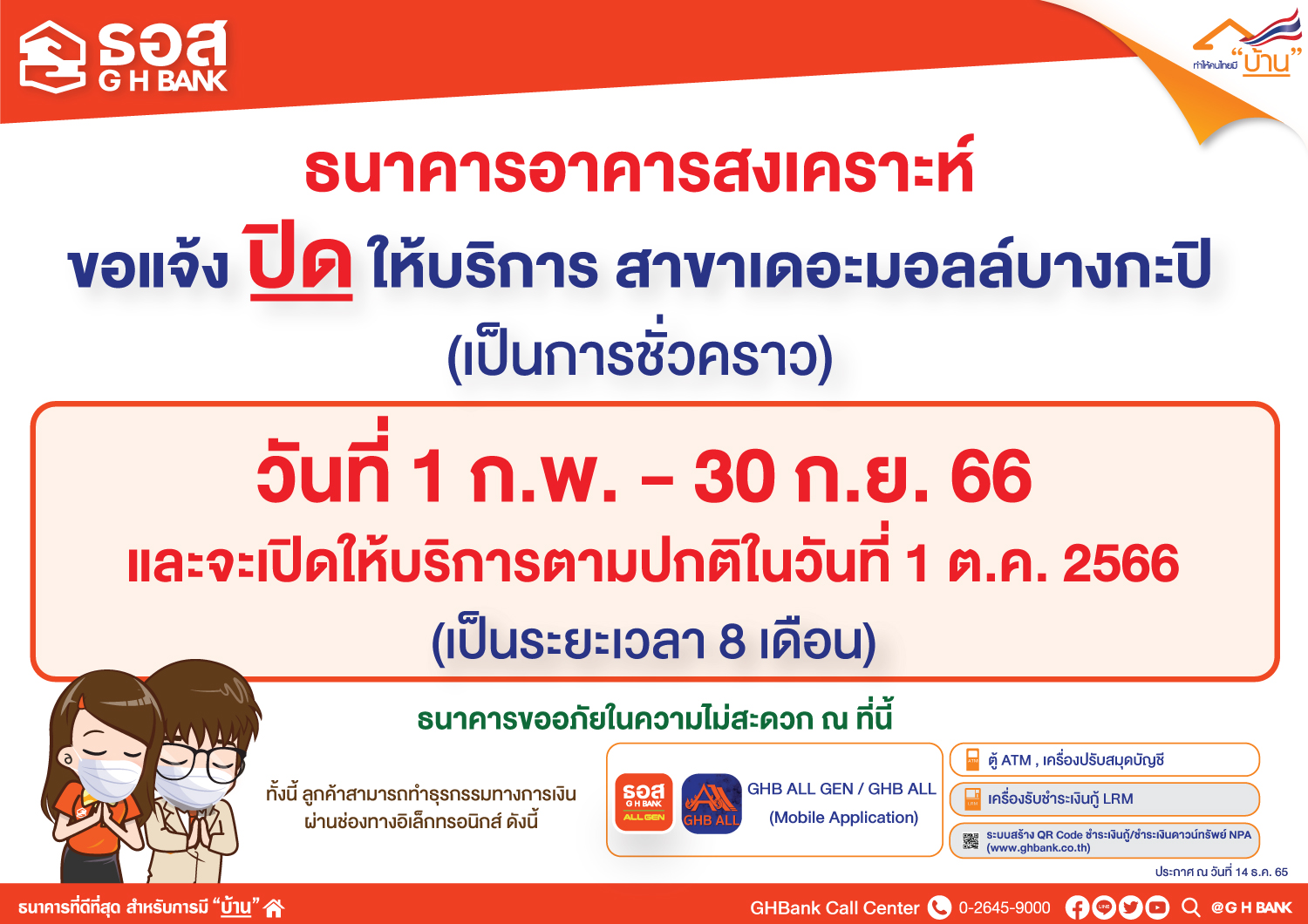 หน้าแรก หน้าแรก ศูนย์ข่าวสาร ข่าวประชาสัมพันธ์ ธอส.ขอแจ้งปิดให้บริการสาขาเดอะมอลล์บางกะปิ (เป็นการชั่วคราว) ศูนย์ข่าวสาร คัดลอกลิ้งค์เก็บไว้ที่คลิปบอร์ดแล้ว ธอส.ขอแจ้งปิดให้บริการสาขาเดอะมอลล์บางกะปิ (เป็นการชั่วคราว) ข่าวประชาสัมพันธ์ 26 ธันวาคม 2565 คัดลอกลิ้งค์เก็บไว้ที่คลิปบอร์ดแล้ว