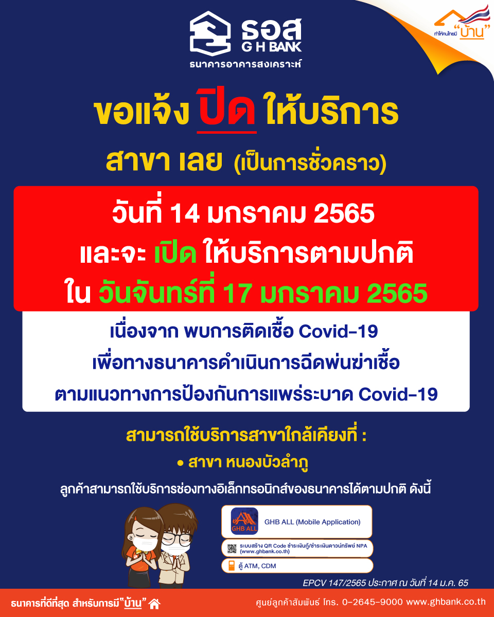 หน้าแรก หน้าแรก ศูนย์ข่าวสาร ข่าวประชาสัมพันธ์ แจ้งปิดทำการสาขาเลย ในวันศุกร์ที่ 14 มกราคม 2565 ศูนย์ข่าวสาร คัดลอกลิ้งค์เก็บไว้ที่คลิปบอร์ดแล้ว แจ้งปิดทำการสาขาเลย ในวันศุกร์ที่ 14 มกราคม 2565 ข่าวประชาสัมพันธ์ 14 มกราคม 2565 คัดลอกลิ้งค์เก็บไว้ที่คลิปบอร์ดแล้ว
