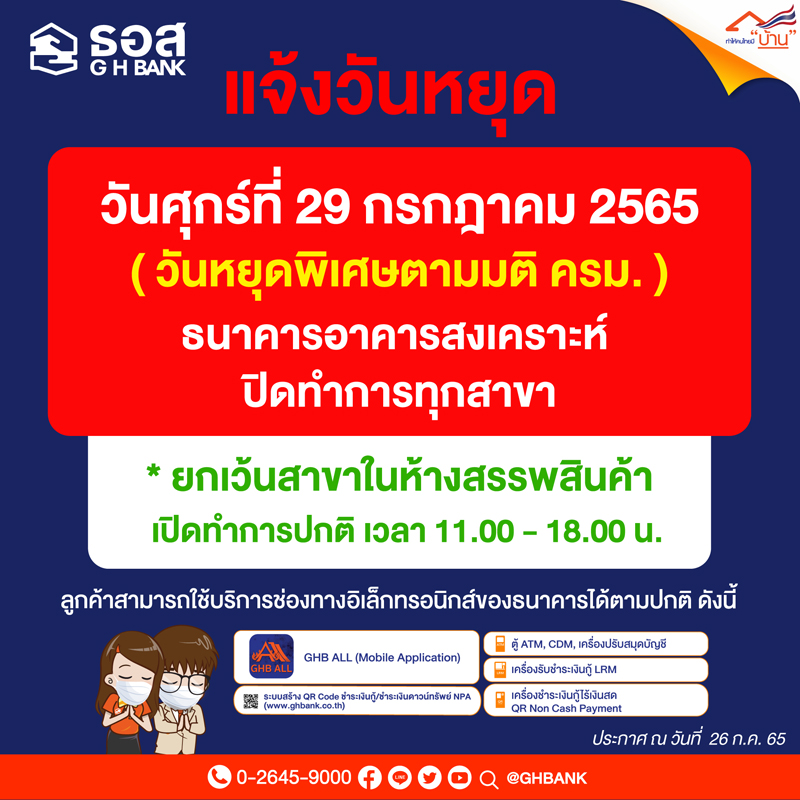 หน้าแรก หน้าแรก ศูนย์ข่าวสาร ข่าวประชาสัมพันธ์ แจ้งวันหยุดพิเศษตามมติ ครม.ในวันศุกร์ที่ 29 กรกฎาคม 2565 ศูนย์ข่าวสาร คัดลอกลิ้งค์เก็บไว้ที่คลิปบอร์ดแล้ว แจ้งวันหยุดพิเศษตามมติ ครม.ในวันศุกร์ที่ 29 กรกฎาคม 2565 ข่าวประชาสัมพันธ์ 26 กรกฎาคม 2565 คัดลอกลิ้งค์เก็บไว้ที่คลิปบอร์ดแล้ว