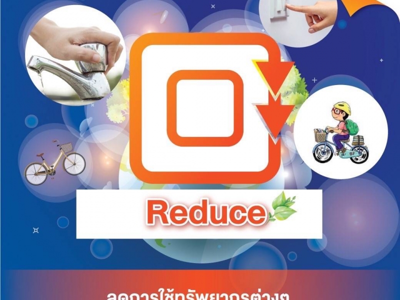 2. Reduce : ลดการใช้ทรัพยากรต่างๆ ที่จะช่วยประหยัดทรัพยากรลงได้อย่างมีประสิทธิภาพ