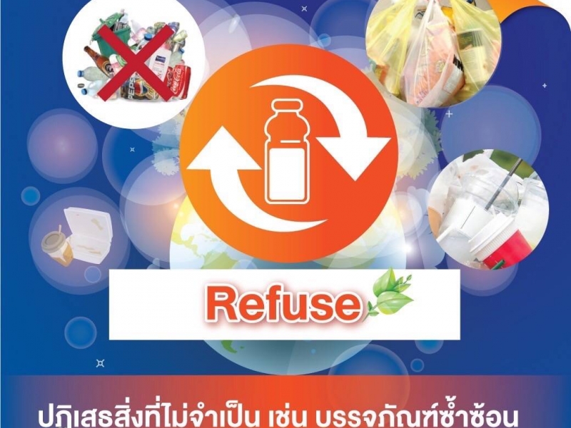 7. Refuse : ปฏิเสธสิ่งที่ไม่จำเป็น เช่น บรรจุภัณฑ์ซ้ำซ้อน วัสดุที่ไม่เป็นมิตรต่อสิ่งแวดล้อม
