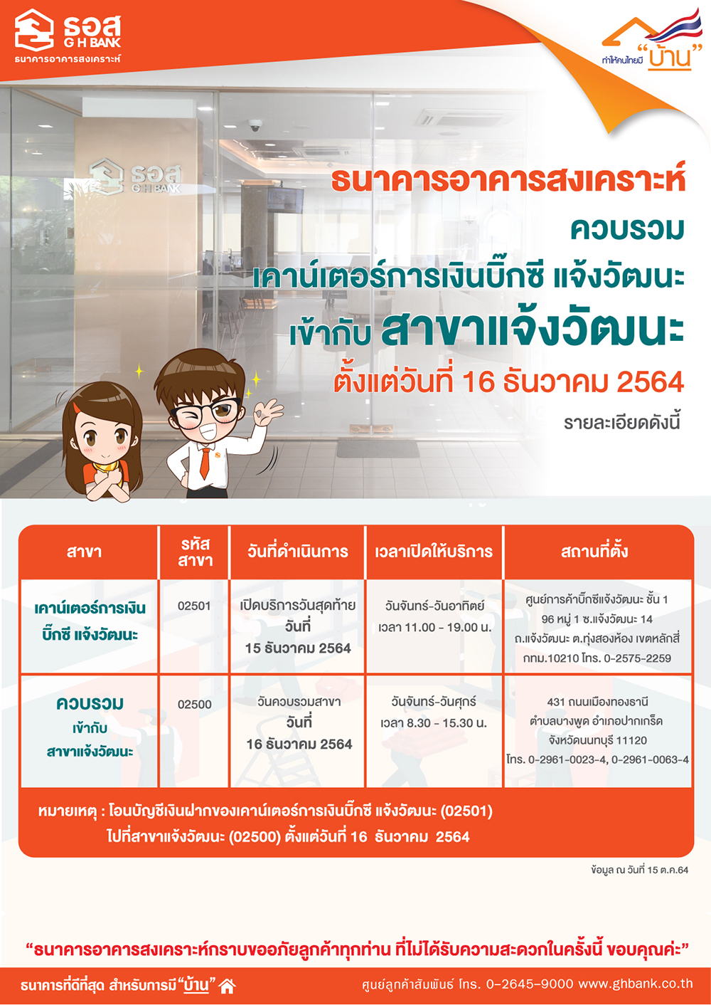 หน้าแรก หน้าแรก ศูนย์ข่าวสาร ข่าวประชาสัมพันธ์ การควบรวมเคาน์เตอร์การเงินบิ๊กซี แจ้งวัฒนะเข้ากับสาขาแจ้งวัฒนะ ศูนย์ข่าวสาร คัดลอกลิ้งค์เก็บไว้ที่คลิปบอร์ดแล้ว การควบรวมเคาน์เตอร์การเงินบิ๊กซี แจ้งวัฒนะเข้ากับสาขาแจ้งวัฒนะ ข่าวประชาสัมพันธ์ 8 พฤศจิกายน 2564 คัดลอกลิ้งค์เก็บไว้ที่คลิปบอร์ดแล้ว
