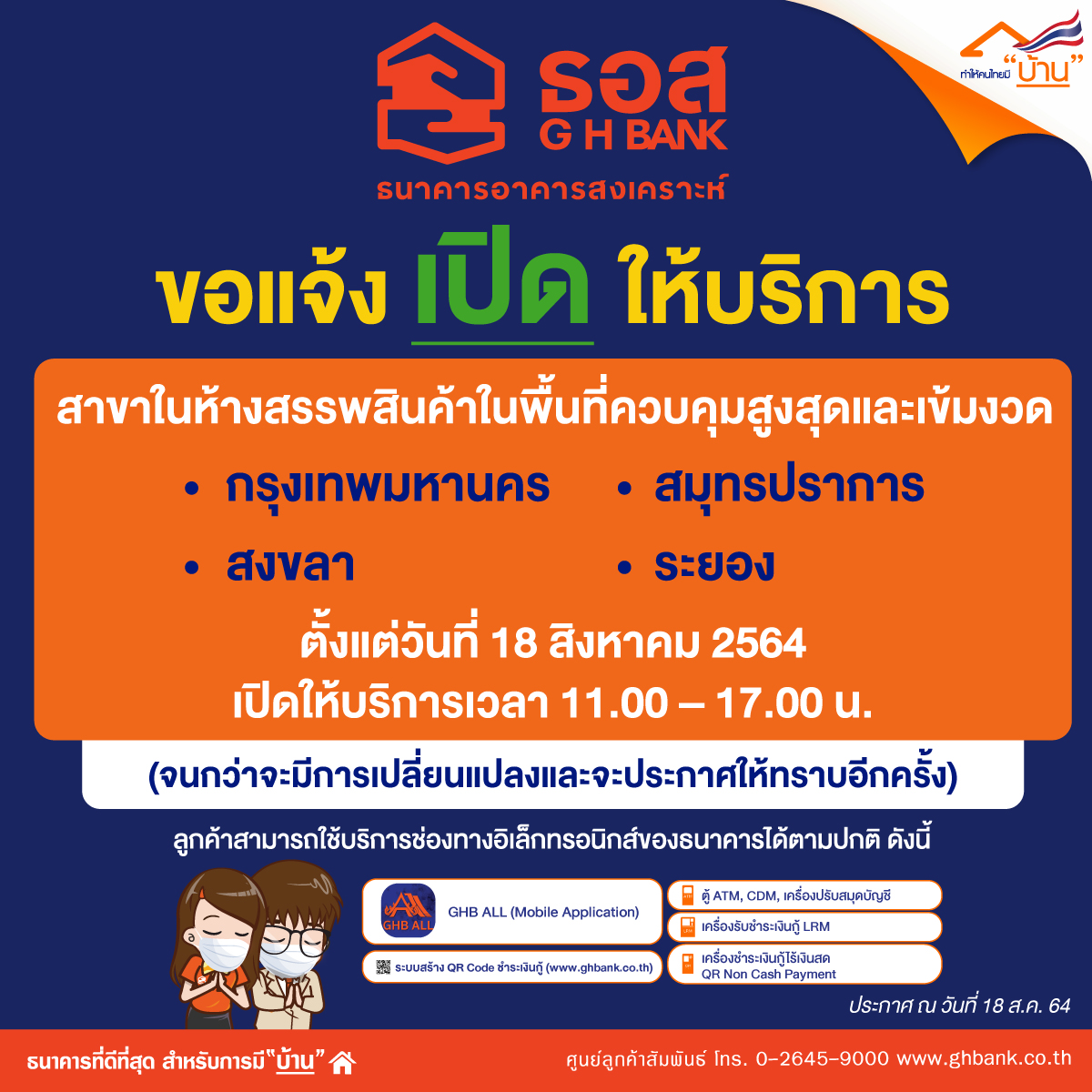 หน้าแรก หน้าแรก ศูนย์ข่าวสาร ข่าวประชาสัมพันธ์ ขอแจ้งเปิดให้บริการสาขาในห้างสรรพสินค้าในพื้นที่ควบคุมสูงสุดและเข้มงวดวันที่ 18 สิงหาคม 2564 และ 19 สิงหาคม 2564 ศูนย์ข่าวสาร คัดลอกลิ้งค์เก็บไว้ที่คลิปบอร์ดแล้ว ขอแจ้งเปิดให้บริการสาขาในห้างสรรพสินค้าในพื้นที่ควบคุมสูงสุดและเข้มงวดวันที่ 18 สิงหาคม 2564 และ 19 สิงหาคม 2564 ข่าวประชาสัมพันธ์ 20 สิงหาคม 2564 คัดลอกลิ้งค์เก็บไว้ที่คลิปบอร์ดแล้ว