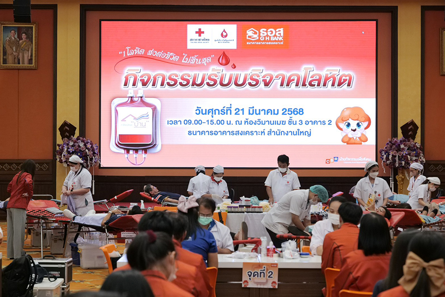 นายกมลภพ วีระพละ กรรมการผู้จัดการ ธนาคารอาคารสงเคราะห์ (ธอส.) เปิดเผยว่าธอส. ในฐานะสถาบันการเงินของรัฐ สังกัดกระทรวงการคลัง ที่มีพันธกิจ “ทำให้คนไทยมีบ้าน”โดยตลอดระยะเวลากว่า 71 ปี ได้สนับสนุนให้คนไทยมีที่อยู่อาศัยเป็นของตนเองมาแล้วมากกว่า 4.6 ล้านครอบครัว ขณะเดียวกัน ธนาคารยังดำเนินการตามนโยบายด้านการแสดงความรับผิดชอบต่อสังคมและสิ่งแวดล้อมควบคู่ไปด้วย โดย ธอส. ร่วมกับ ศูนย์บริการโลหิตแห่งชาติ สภากาชาดไทย จัดกิจกรรมรับบริจาคโลหิต ครั้งที่ 1 ประจำปี 2568 ในวันศุกร์ที่ 21 มีนาคม 2568 โดยได้รับเกียรติจาก ดร. ดรุฒ คำวิชิตธนาภา กรรมการธนาคาร และประธานกรรมการบริหาร เข้าร่วมกิจกรรมพร้อมมอบของที่ระลึกให้แก่ผู้ร่วมบริจาคโลหิต ซึ่งถือเป็นส่วนหนึ่งในกิจกรรมจิตอาสาบำเพ็ญสาธารณกุศล ขณะเดียวกันยังเป็นการส่งเสริมให้พนักงานธนาคารมีส่วนร่วมเสียสละเพื่อทำประโยชน์ในการช่วยเหลือผู้อื่น โดยคณะผู้บริหาร พนักงานธนาคาร รวมทั้งลูกค้า และประชาชนร่วมบริจาคโลหิตรวมจำนวน 104,150 ซีซี ซึ่งโลหิตที่ได้รับบริจาคจะนำไปสำรองสำหรับผู้ป่วยในโรงพยาบาลทั่วประเทศ ซึ่งสอดคล้องกับนโยบายด้านการแสดงความรับผิดชอบต่อสังคมและสิ่งแวดล้อมหรือ CSR ของธนาคาร โดยธนาคารให้ความสำคัญและดำเนินการมาอย่างต่อเนื่อง ควบคู่กับการดำเนินงานตามภารกิจหลักในการสนับสนุนสินเชื่อเพื่อที่อยู่อาศัยแก่ประชาชนโดยเฉพาะกลุ่มผู้มีรายได้น้อย และปานกลางให้สามารถมีที่อยู่อาศัยเป็นของตนเอง โดยกิจกรรมรับบริจาคโลหิตครั้งที่ 1 ประจำปี 2568 จัดขึ้น ณ ห้องวิมานเมฆ ธนาคารอาคารสงเคราะห์ สำนักงานใหญ่ เมื่อวันที่ 21 มีนาคม 2568