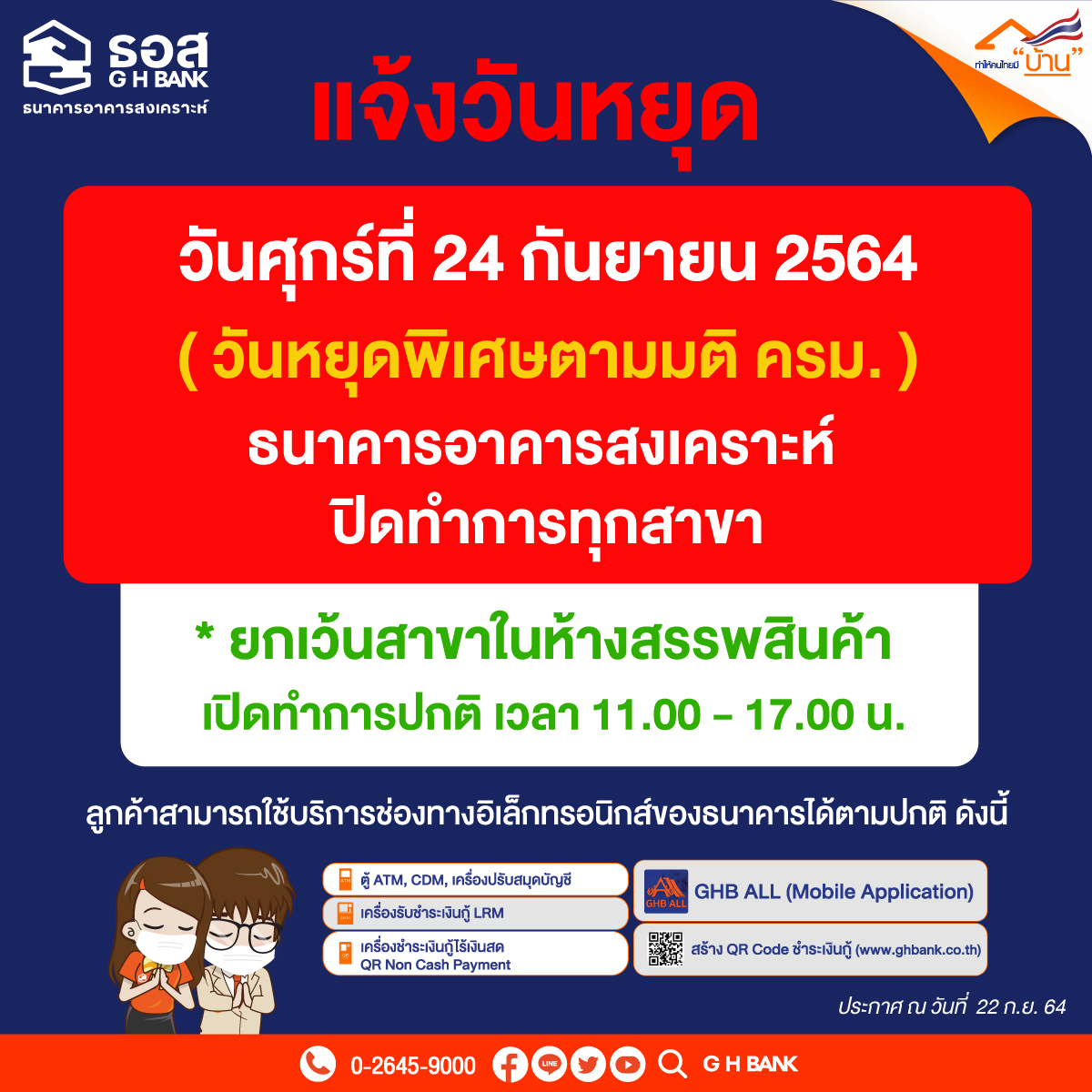 หน้าแรก หน้าแรก ศูนย์ข่าวสาร ข่าวประชาสัมพันธ์ แจ้งวันหยุด วันศุกร์ที่ 24 กันยายน 2564 (วันหยุดพิเศษตามมติ ครม.) ศูนย์ข่าวสาร คัดลอกลิ้งค์เก็บไว้ที่คลิปบอร์ดแล้ว แจ้งวันหยุด วันศุกร์ที่ 24 กันยายน 2564 (วันหยุดพิเศษตามมติ ครม.) ข่าวประชาสัมพันธ์ 22 กันยายน 2564 คัดลอกลิ้งค์เก็บไว้ที่คลิปบอร์ดแล้ว