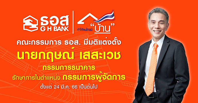 ธนาคารอาคารสงเคราะห์ (ธอส.) โดยคณะกรรมการ ธอส. ในการประชุมครั้งที่ 3/2566 เมื่อวันที่ 16 กุมภาพันธ์ 2566 มีมติอนุมัติแต่งตั้ง นายกฤษณ์ เสสะเวช กรรมการธนาคาร (กรรมการอิสระ) รักษาการในตำแหน่งกรรมการผู้จัดการ ธนาคารอาคารสงเคราะห์ แทนนายฉัตรชัย ศิริไล ที่ได้รับอนุมัติให้ลาออกจากตำแหน่งกรรมการผู้จัดการ ทั้งนี้ การแต่งตั้งรักษาการในตำแหน่งกรรมการผู้จัดการได้ผ่านความเห็นชอบจากธนาคารแห่งประเทศไทย และมีผลตั้งแต่วันที่ 24 มีนาคม 2566 เป็นต้นไป โดยการแต่งตั้ง นายกฤษณ์ เสสะเวช กรรมการธนาคาร (กรรมการอิสระ) รักษาการในตำแหน่งกรรมการผู้จัดการ ธอส. ในครั้งนี้ เพื่อให้การบริหารงานของธนาคารตามพันธกิจ “ทำให้คนไทยมีบ้าน” ดำเนินไปด้วยความต่อเนื่องเรียบร้อย