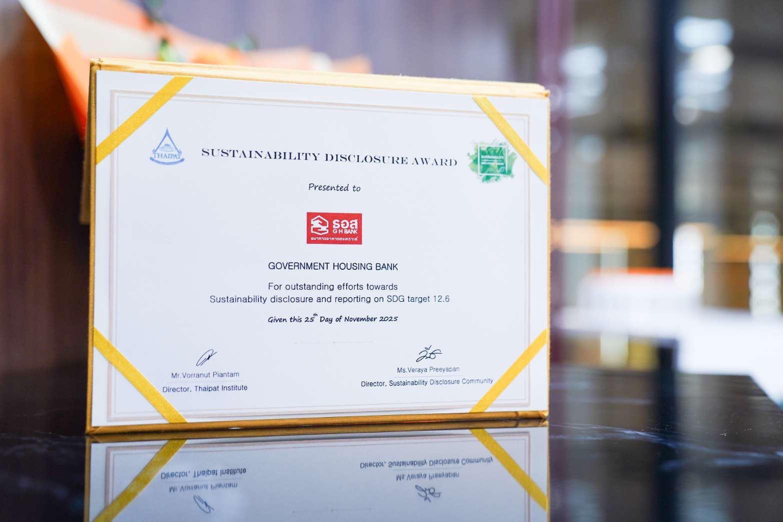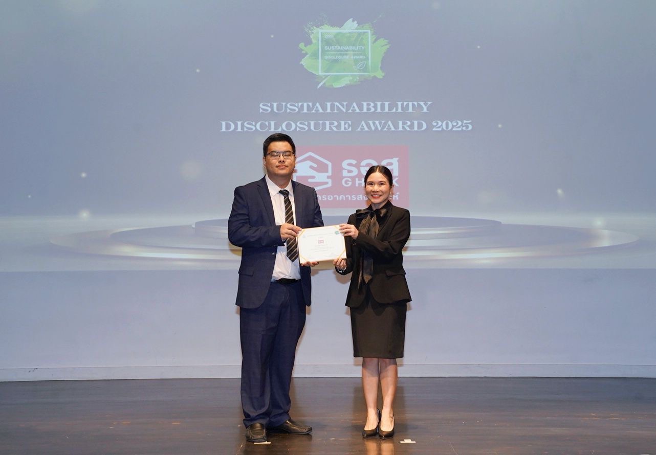 ธนาคารอาคารสงเคราะห์ (ธอส.) รับรางวัลเกียรติคุณ Sustainability Disclosure Award ประจำปี 2568 เป็นปีที่ 5 ติดต่อกัน จากสถาบันไทยพัฒน์ สะท้อนการเป็นองค์กรที่ให้ความสำคัญในการเปิดเผยข้อมูลการดำเนินงานด้านการพัฒนาความยั่งยืนที่เป็นไปตามมาตรฐานสากลนำไปสู่การพัฒนาองค์กรเพื่อความยั่งยืน