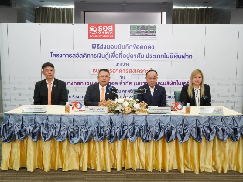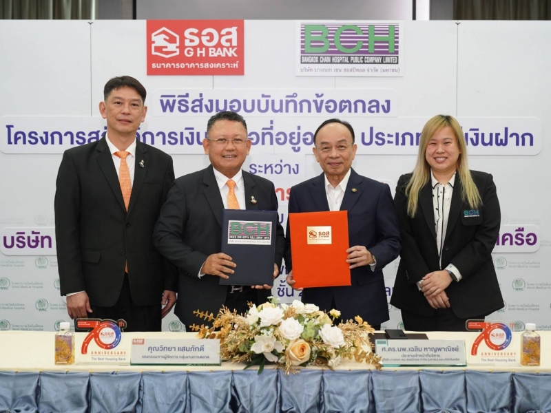 วันนี้ (30 พฤศจิกายน 2566) นายวิทยา แสนภักดี รองกรรมการผู้จัดการ กลุ่มงานการตลาด ธนาคารอาคารสงเคราะห์ (ธอส.) ทำการส่งมอบบันทึกข้อตกลงโครงการสวัสดิการเงินกู้เพื่อที่อยู่อาศัย ประเภทไม่มีเงินฝาก ระหว่างธนาคารอาคารสงเคราะห์ กับ บริษัท บางกอก เชน ฮอสปิทอล จำกัด (มหาชน) (BCH) และบริษัทในเครือ โดยมี ศ.ดร.นพ.เฉลิม หาญพาณิชย์ ประธานเจ้าหน้าที่บริหาร บริษัท บางกอก เชน ฮอสปิทอล จำกัด (มหาชน) (BCH) และบริษัทในเครือ ร่วมพิธี เพื่อให้พนักงานของบริษัท BCH และบริษัทในเครือสามารถเข้าถึงผลิตภัณฑ์และบริการทางการเงินของธนาคารได้สะดวกยิ่งขึ้น รวมถึงได้รับสิทธิพิเศษต่างๆ ที่จัดทำขึ้นเฉพาะลูกค้าสวัสดิการ ทั้งด้านสินเชื่อและเงินฝากของธนาคาร