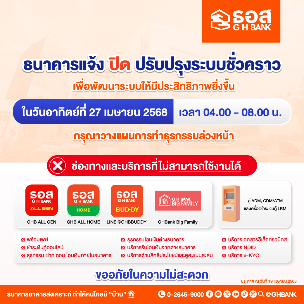 หน้าแรก หน้าแรก ศูนย์ข่าวสาร ข่าวประชาสัมพันธ์ ธนาคารแจ้งปิดปรับปรุงระบบชั่วคราว วันอาทิตย์ที่ 27 เมษายน 2568 เวลา 04:00น. ถึง 08:00 น. ศูนย์ข่าวสาร คัดลอกลิ้งค์เก็บไว้ที่คลิปบอร์ดแล้ว ธนาคารแจ้งปิดปรับปรุงระบบชั่วคราว วันอาทิตย์ที่ 27 เมษายน 2568 เวลา 04:00น. ถึง 08:00 น. ข่าวประชาสัมพันธ์ 19 เมษายน 2568 คัดลอกลิ้งค์เก็บไว้ที่คลิปบอร์ดแล้ว