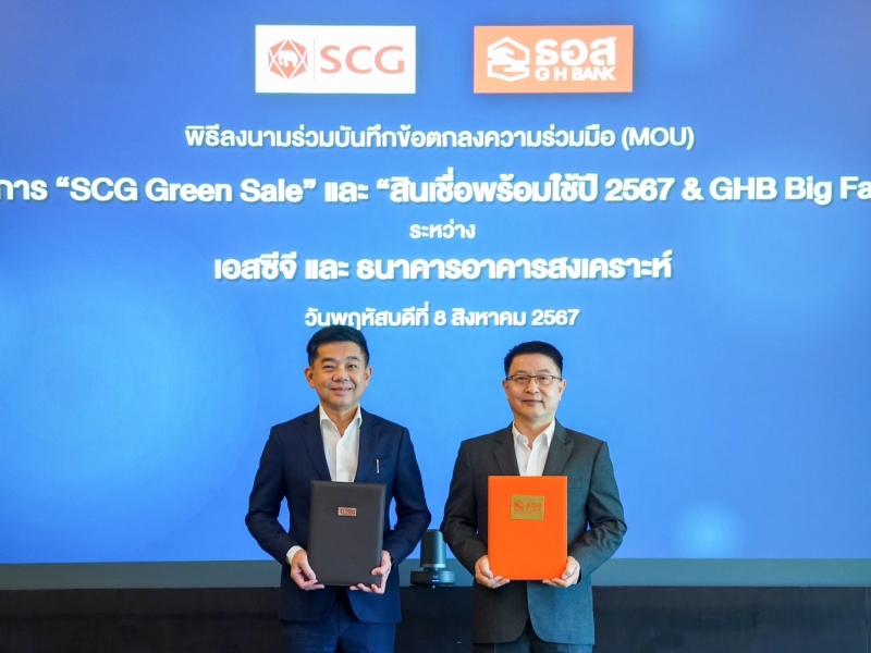 วันนี้ (8 สิงหาคม 2567) ธนาคารอาคารสงเคราะห์ (ธอส.) และ เอสซีจี ร่วมลงนามบันทึกข้อตกลงความร่วมมือการส่งเสริมผลิตภัณฑ์ และบริการของ ธอส. และ เอสซีจี ภายใต้โครงการสินเชื่อพร้อมใช้ ปี 2567 และโครงการ GHB Big Family